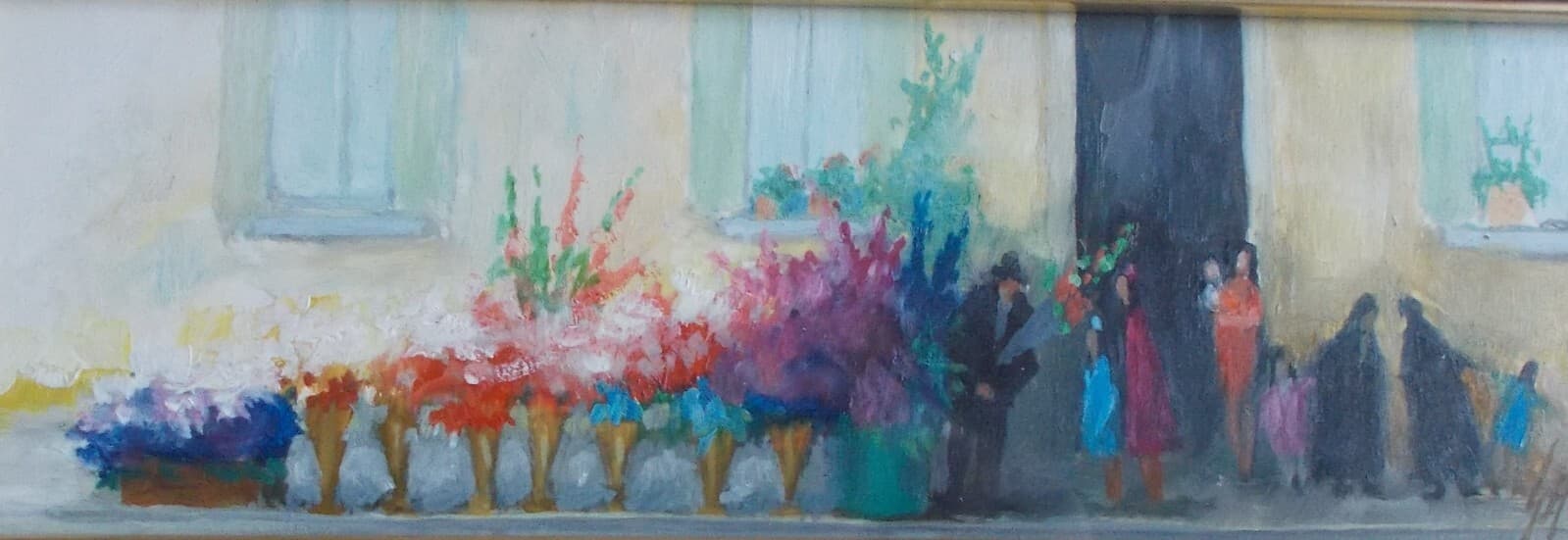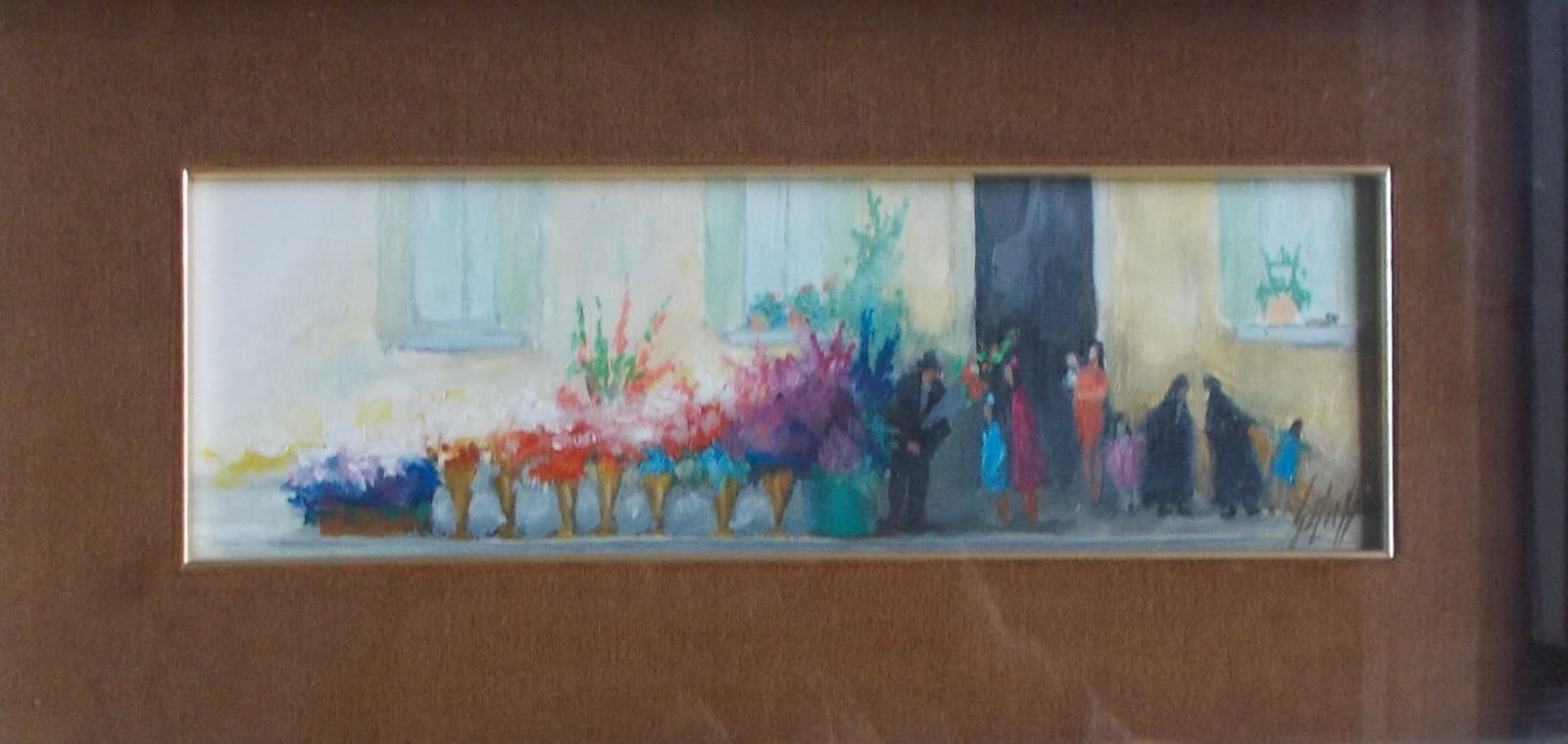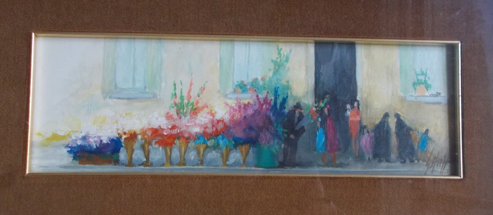 Arte Del Novecento: Dipinto Decorativo Con Fioraio E Fiori. Opera Firmata