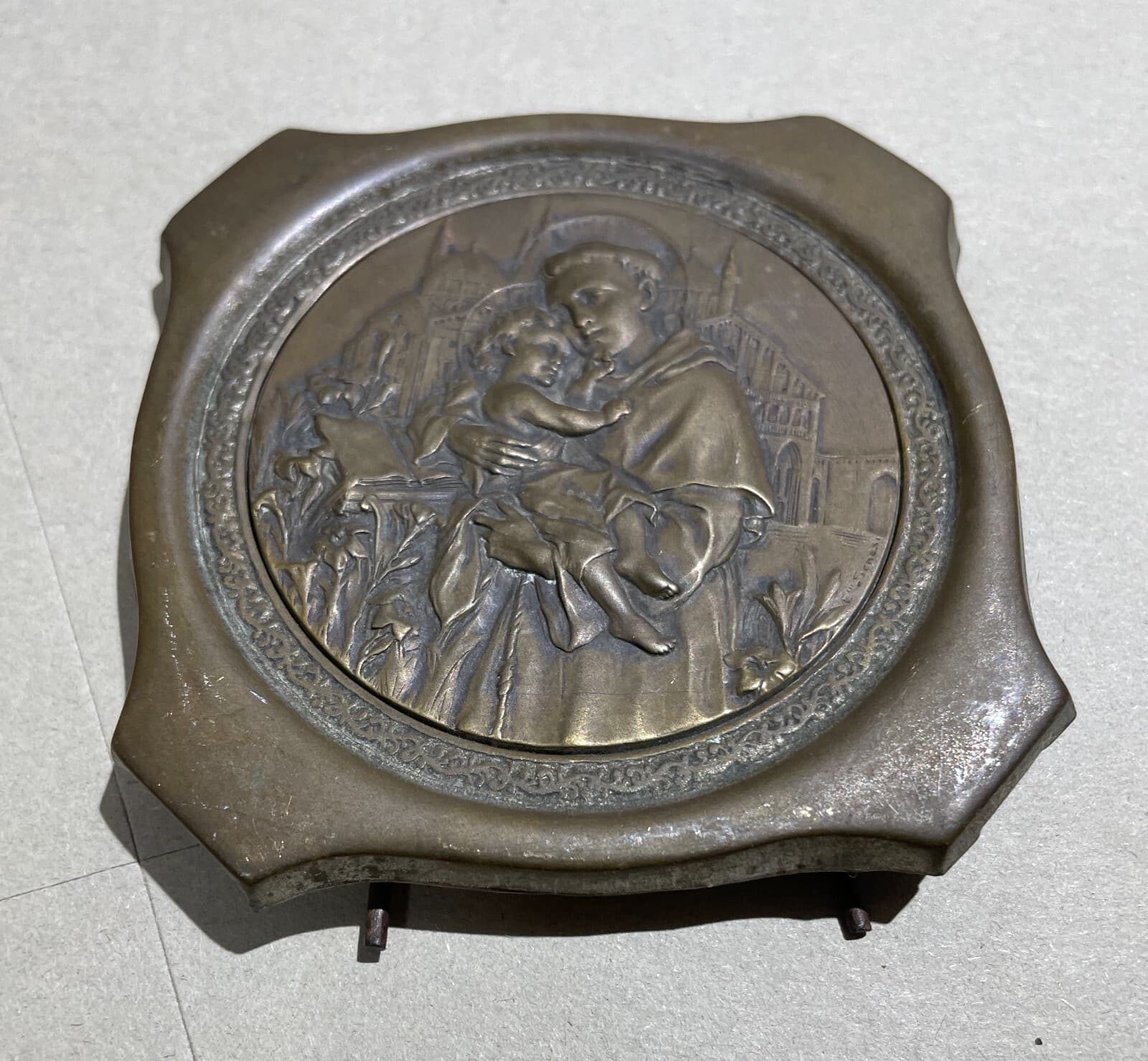 Arte Devozionale: Antico Soprammobile Con Sbalzo Decorativo Di Sant'Antonio Da Padova