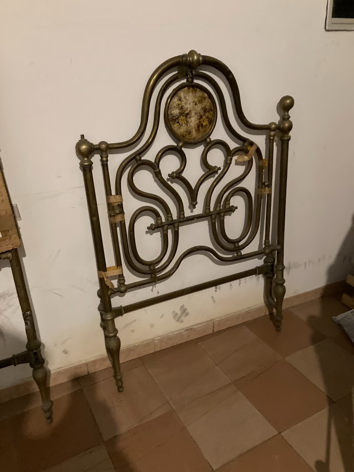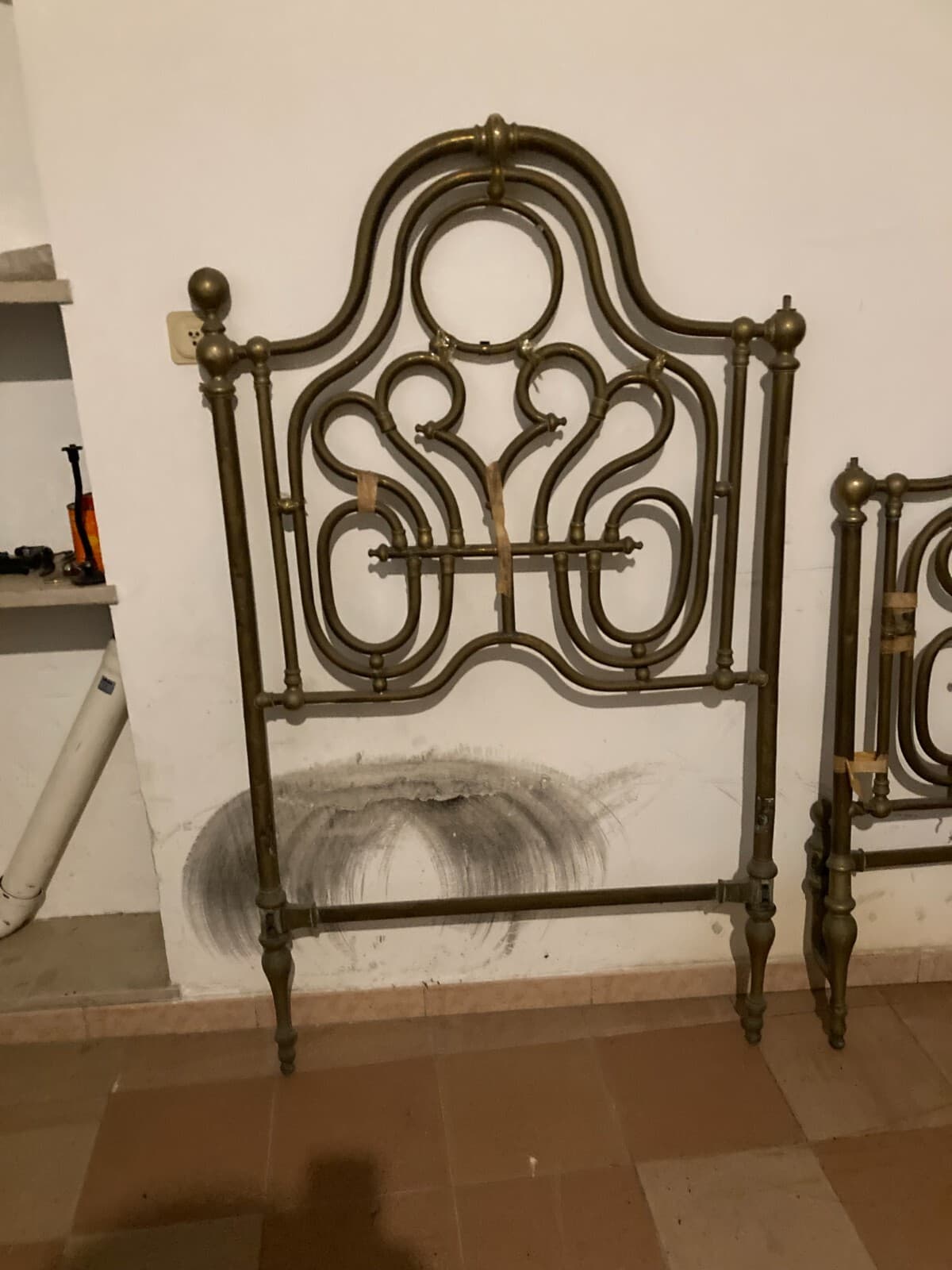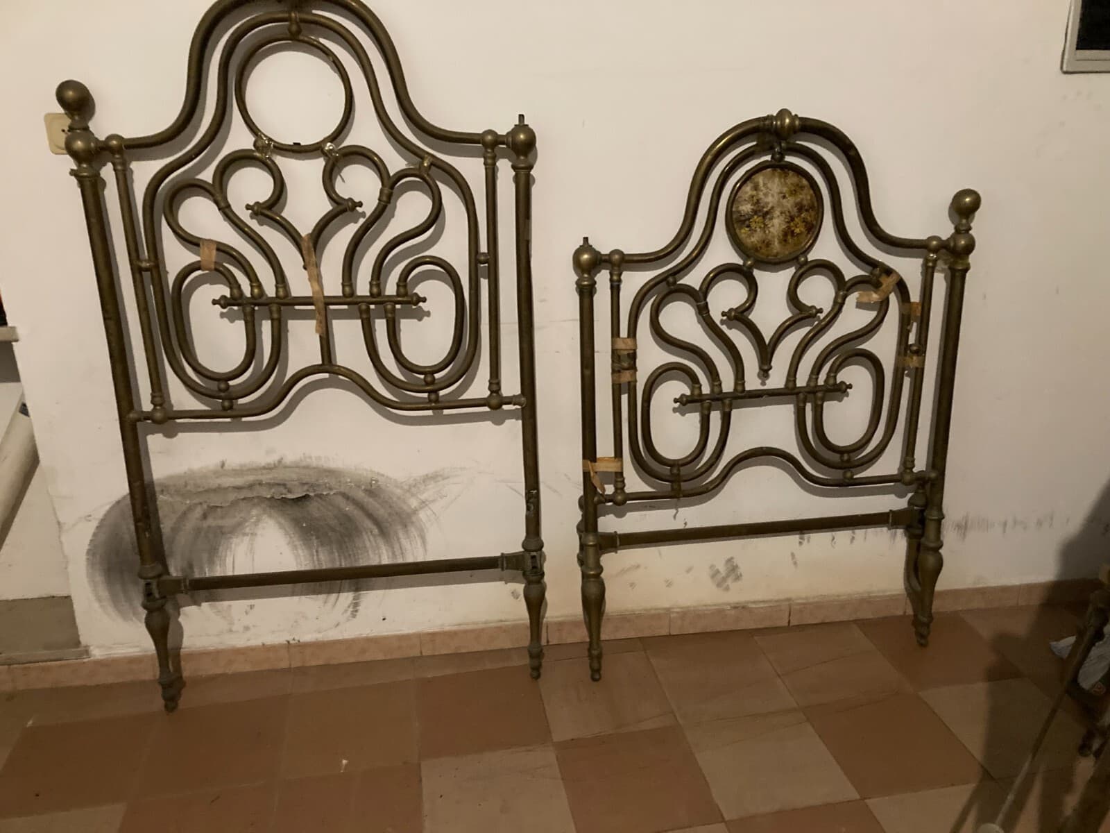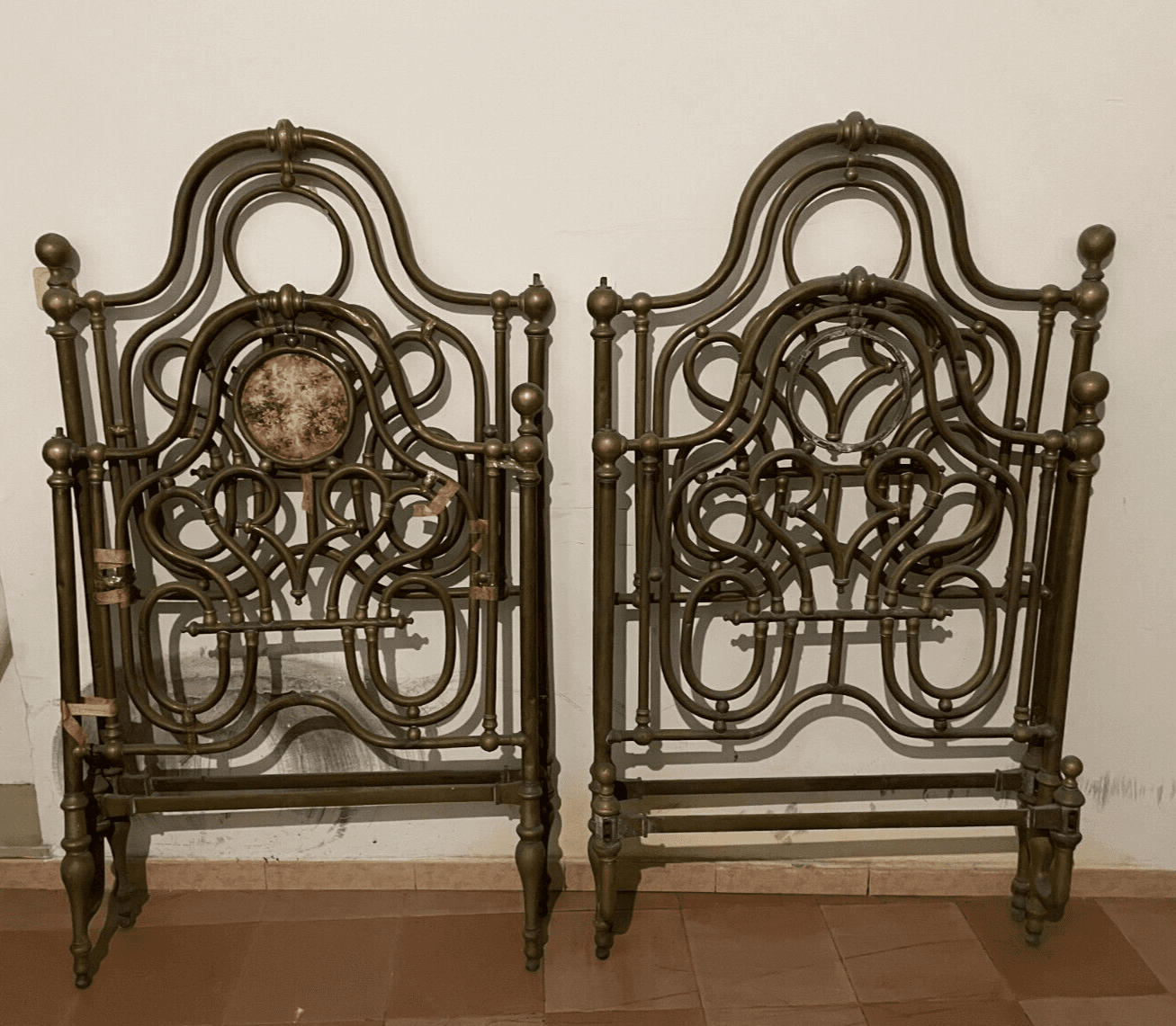 Arredamento d'Epoca: Antico Letto Matrimoniale In Ottone A Due Letti Distinti, XIX Secolo