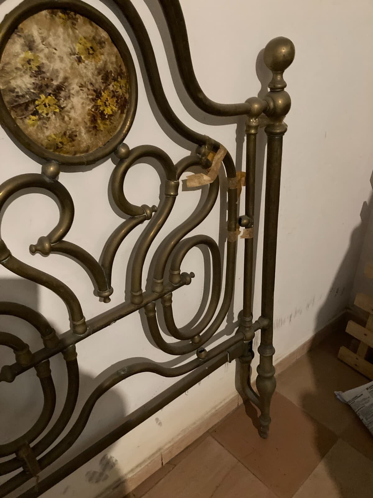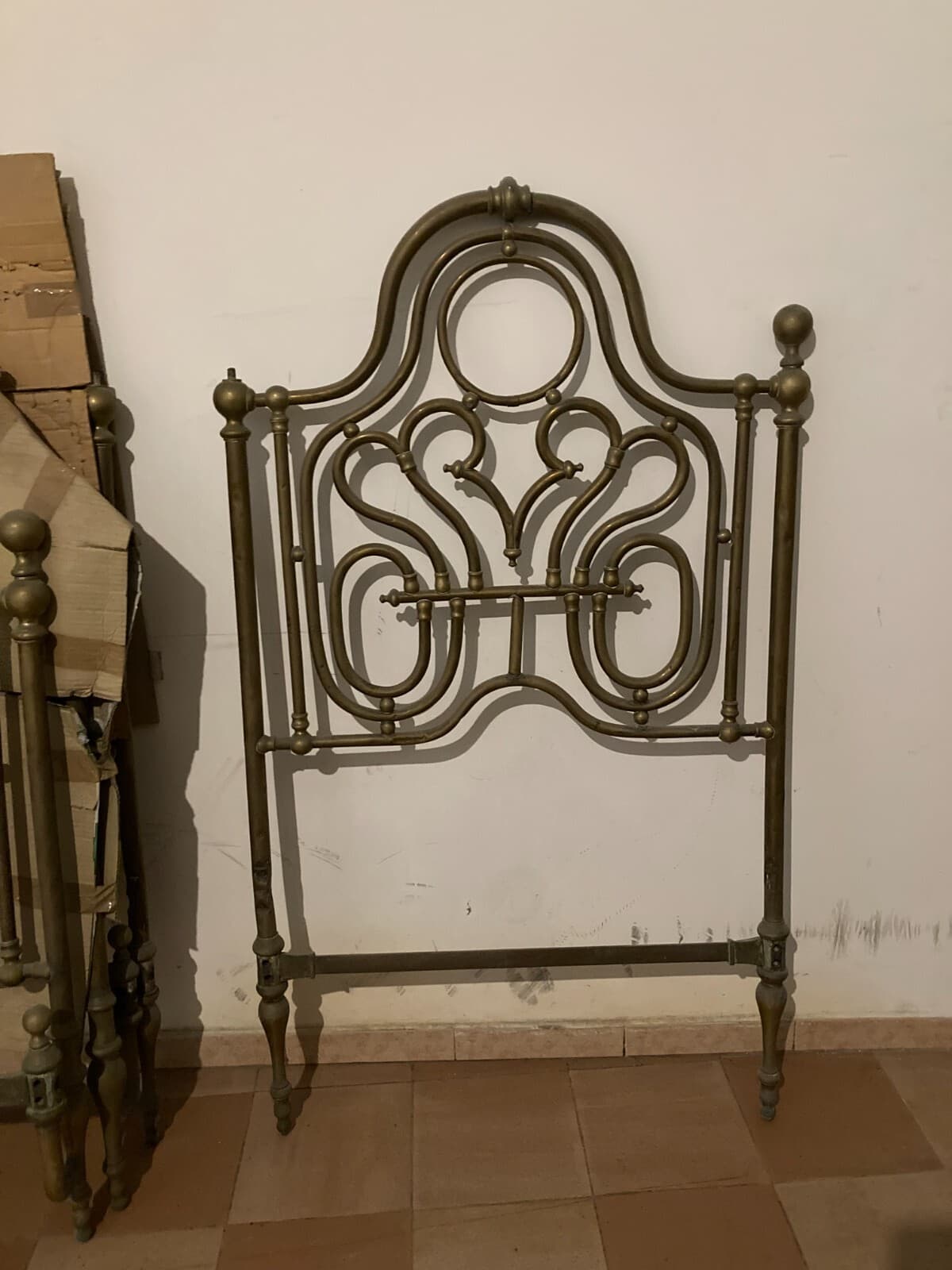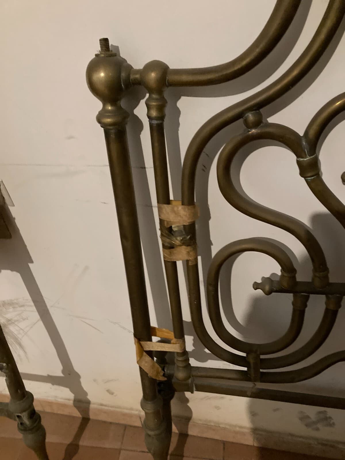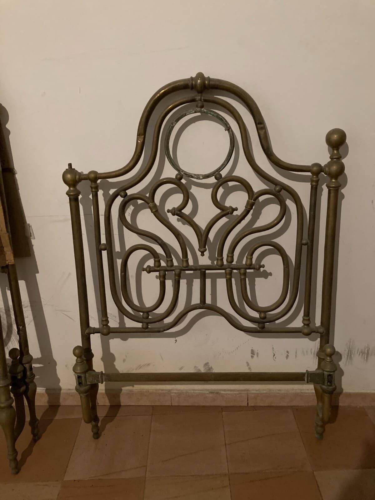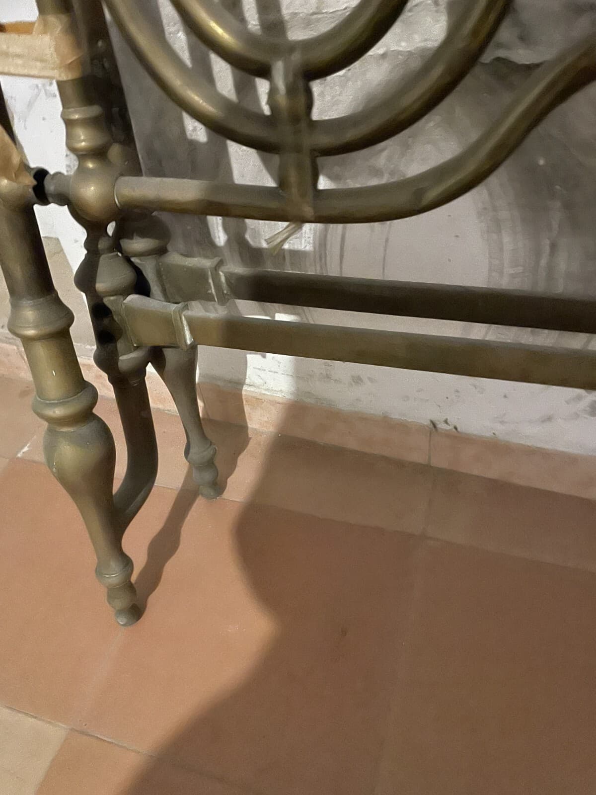 Arredamento d'Epoca: Antico Letto Matrimoniale In Ottone A Due Letti Distinti, XIX Secolo