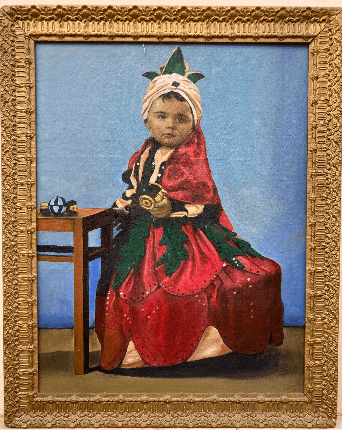 Suggestivo Ritratto Di Bimba Con Giocattoli, Firmato