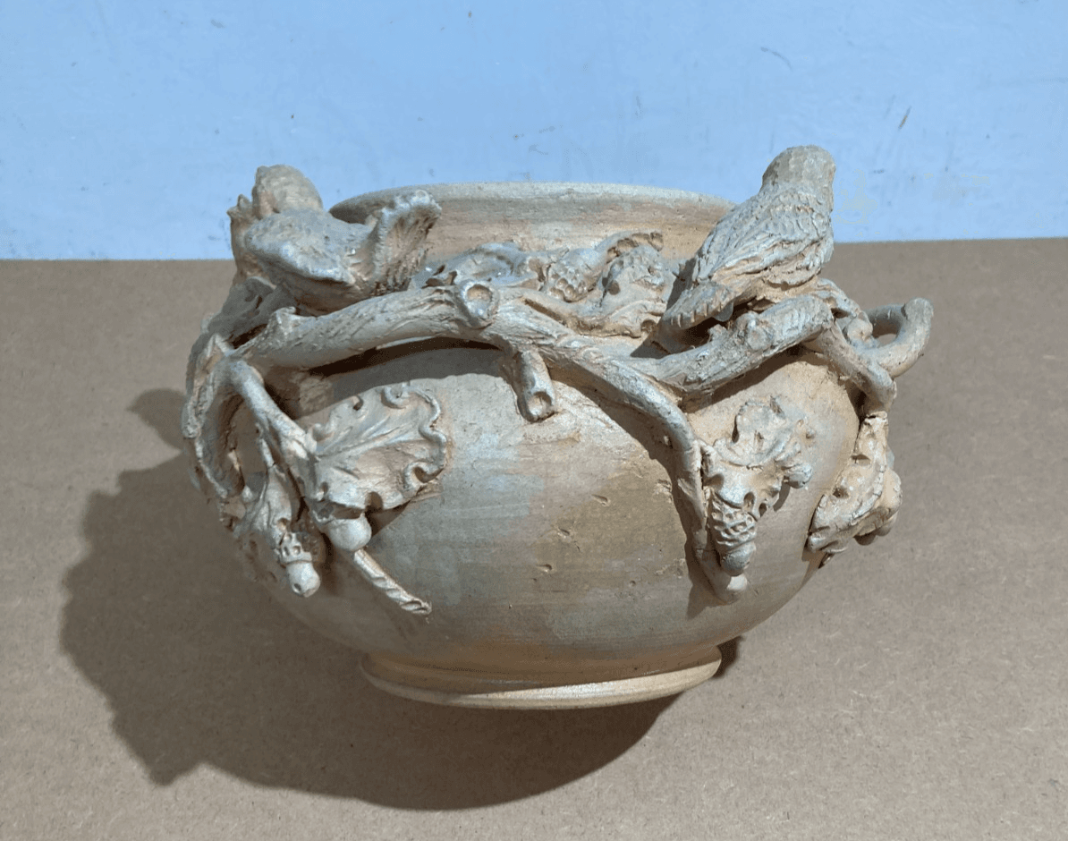 Arti Decorative Del '900: Soprammobile Artistico, Vaso Con Uccellini E Ghiande
