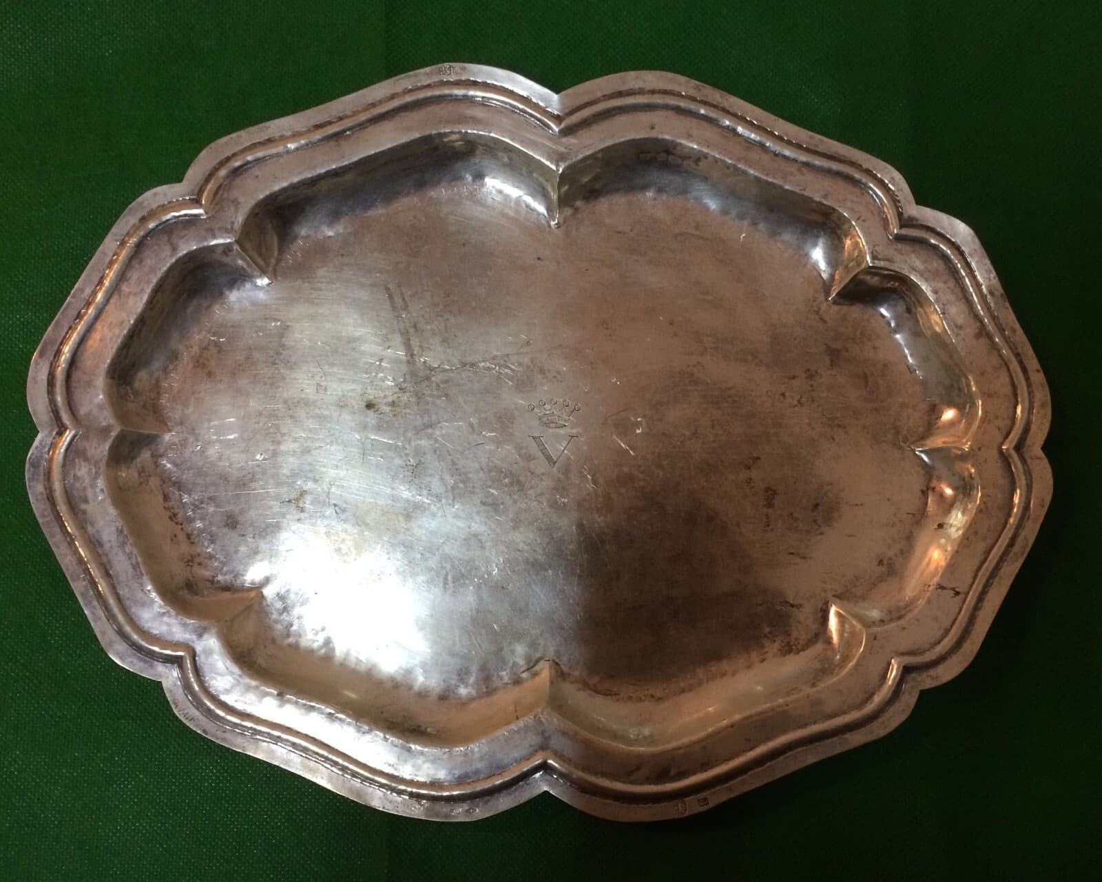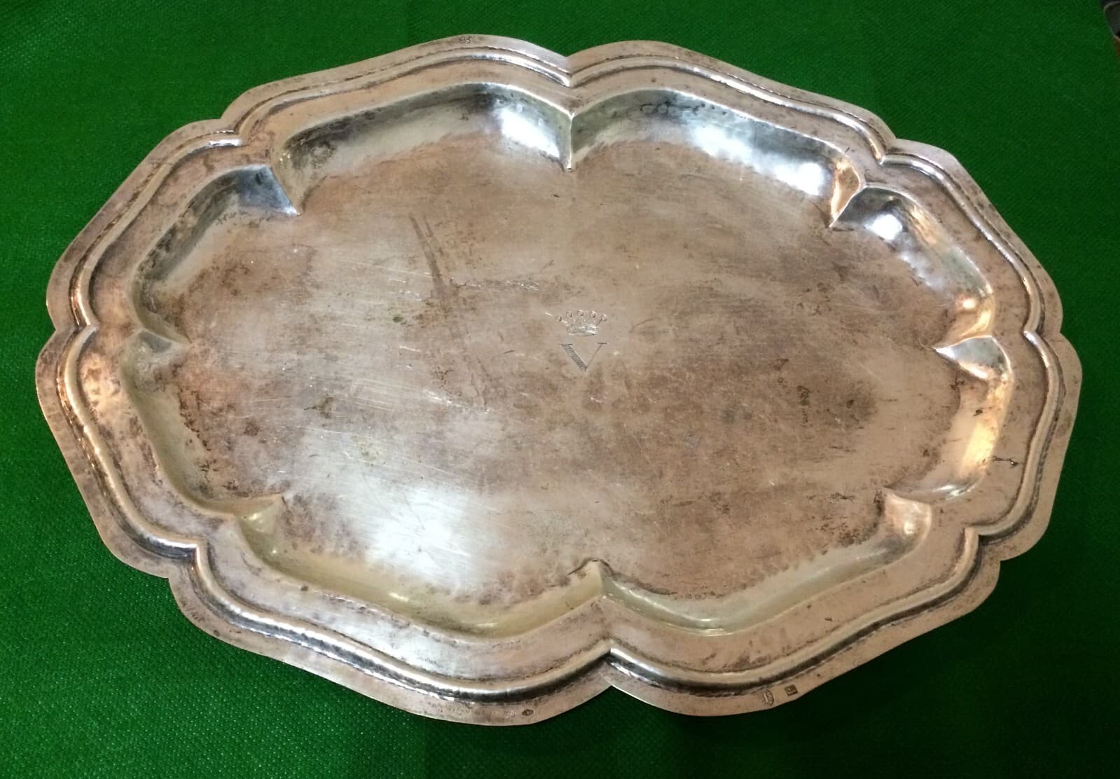 Araldica: Interessante Argenteria Di Famiglia. Decorativo Piatto Ovale Con V Coronata