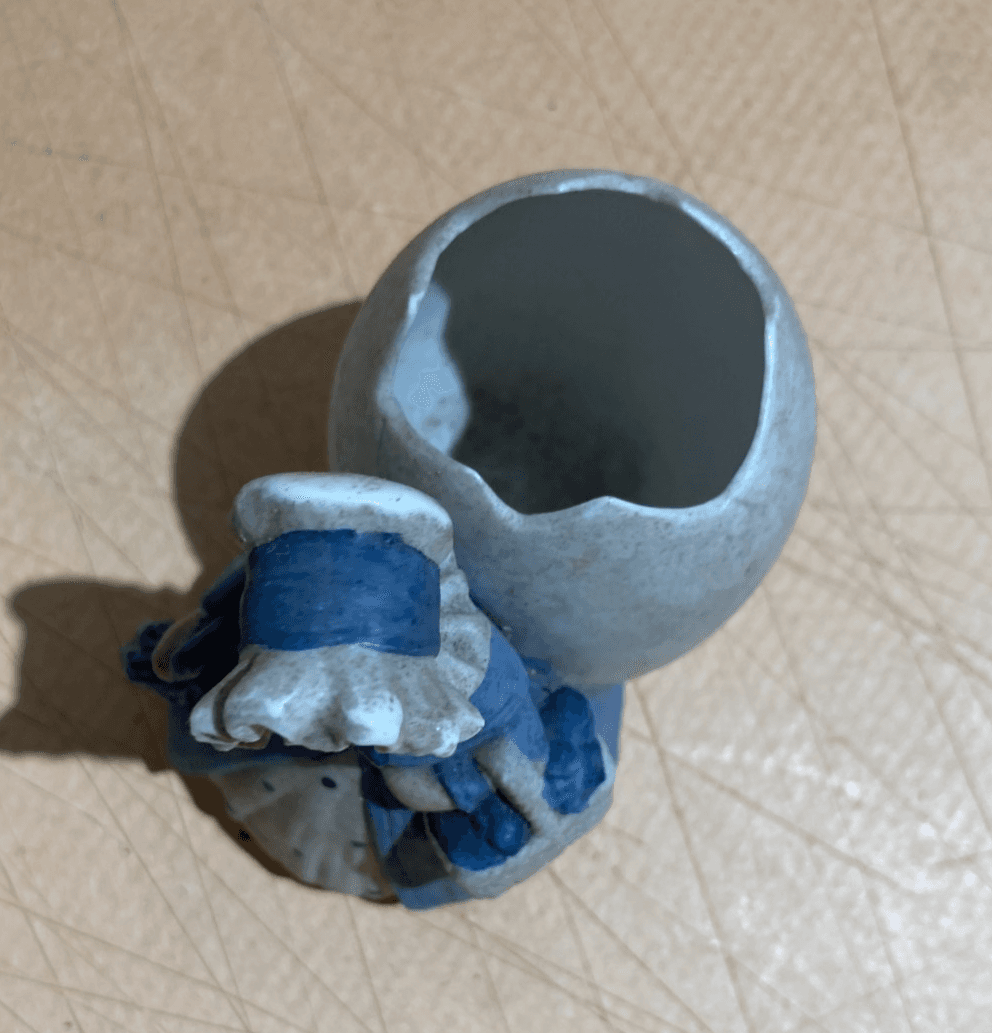 Grazioso Soprammobile Piccola Scultura In Bisquit Figura Femminile Con Uovo