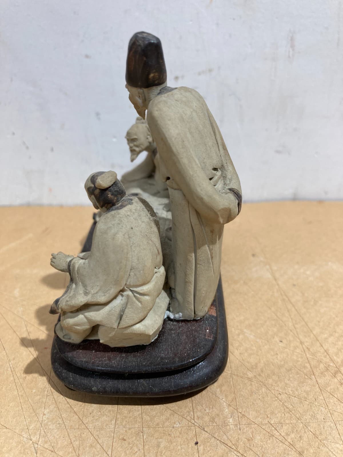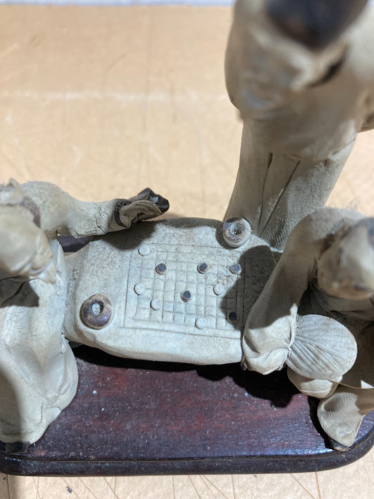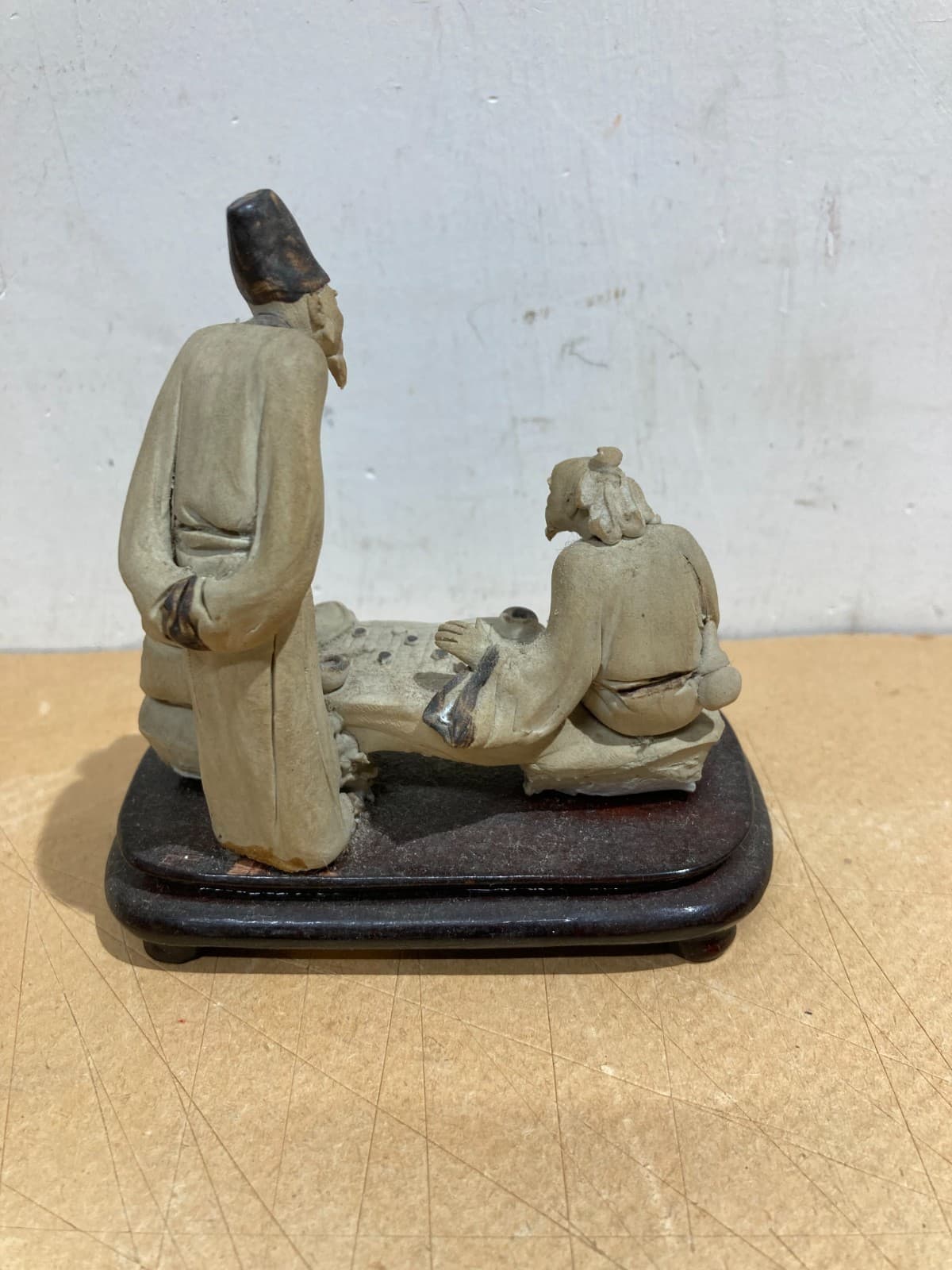 Piccola Scultura In Ceramica Con Figure Orientali Al Gioco Della Dama