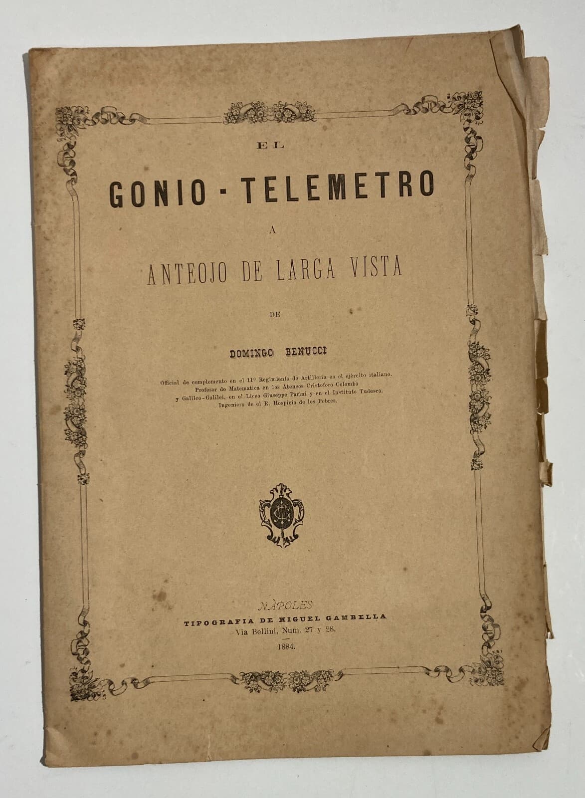 Il Gonio Telemetro A Cannocchiale Di Domenico Benucci. Napoli, 1884.