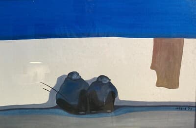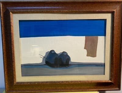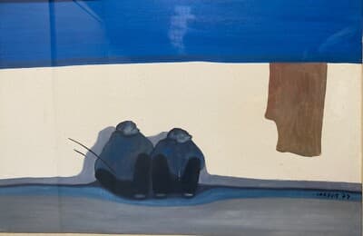 Cabras: Figure Sedute, Dipinto A Olio Su Tela, 1977