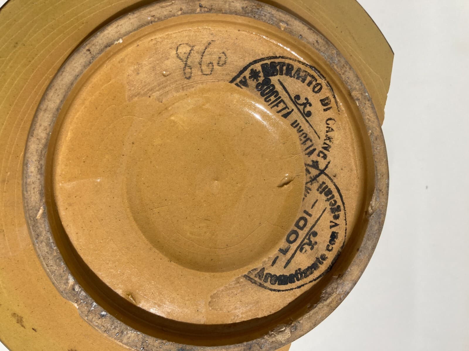 Ceramica Da Collezione Con Decoro Floreale Policromo Pubblicitaria Di Alimentari Di Lodi