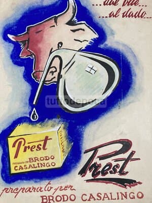 Brodo Prest: Bozzetto Pubblicitario Originale, Metà Del '900