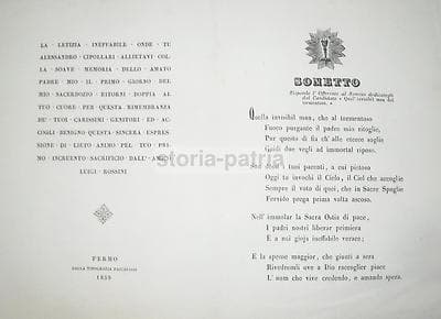 Marche, Fermo. Sacerdozio Cipollari. Luigi Rossini. Antico Raro Foglio Volante, 1859