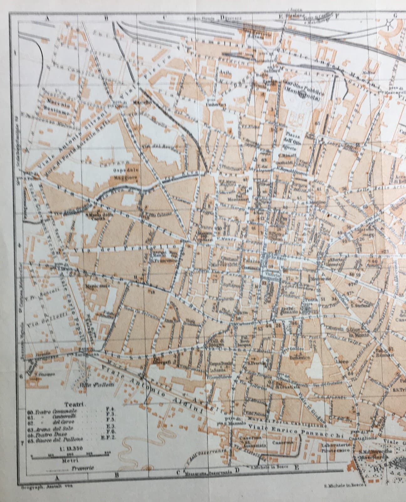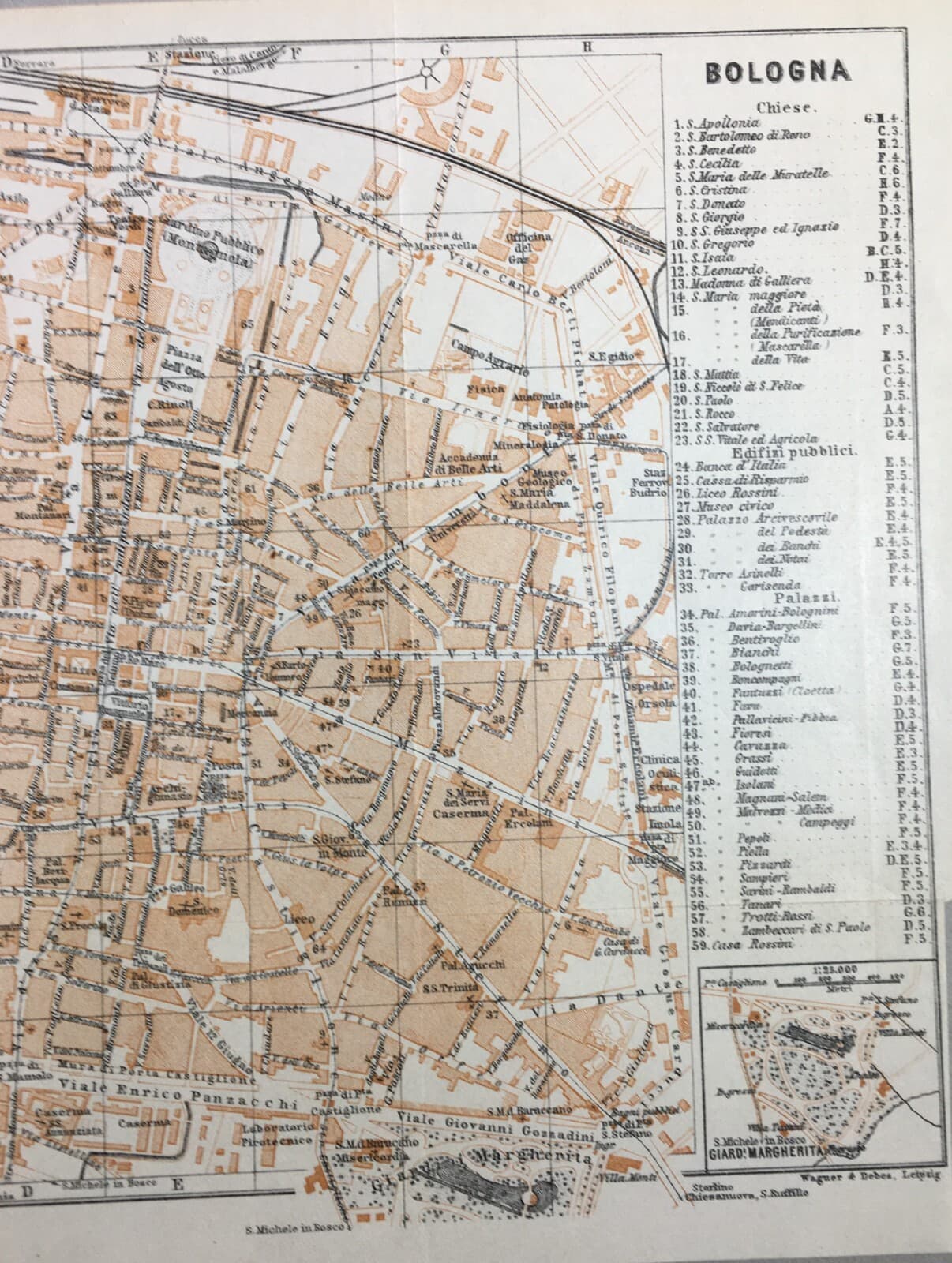Bologna Antica Cartografia, Mappa Topografica Della Città Con Viabilità E Monumenti