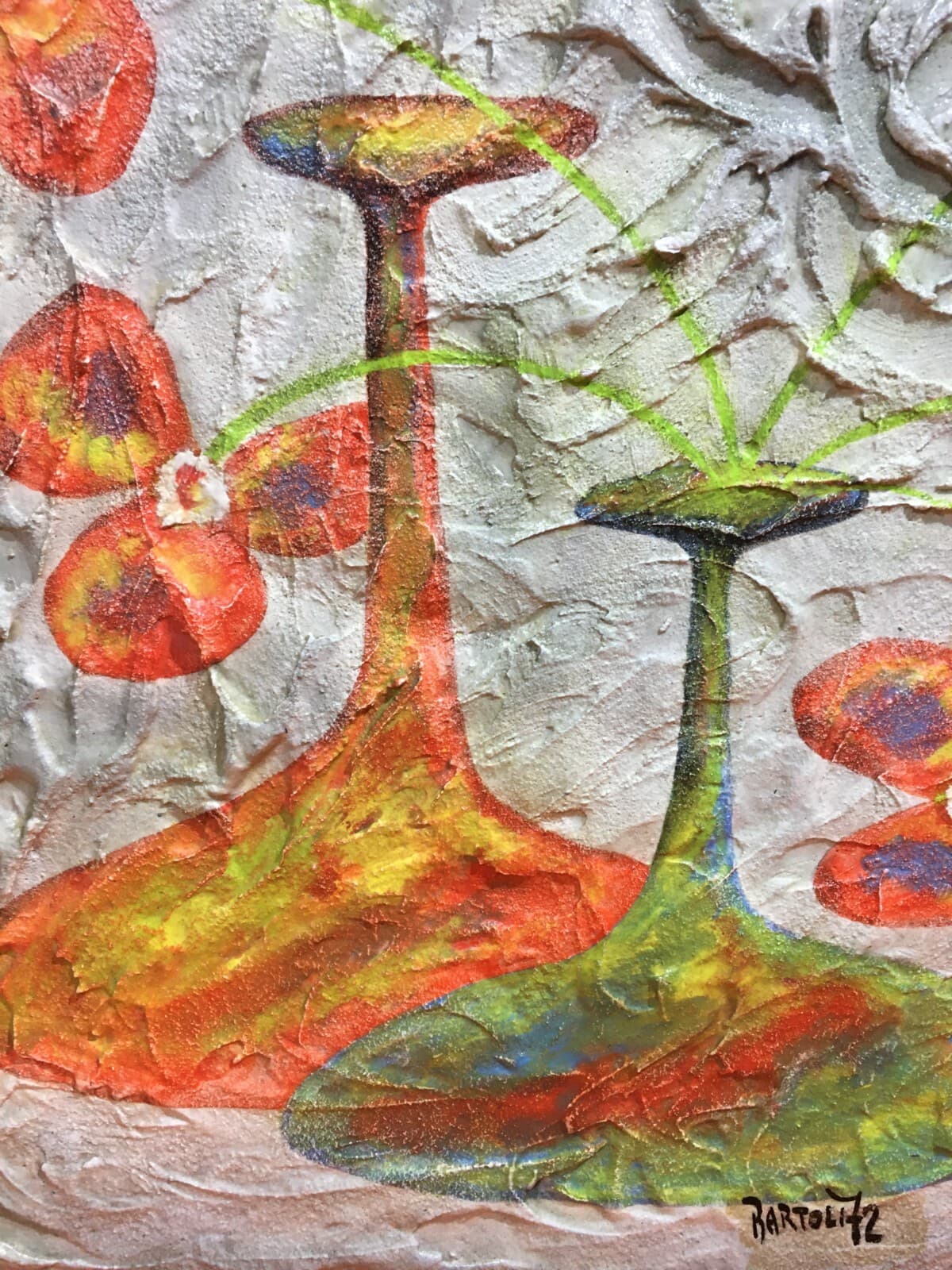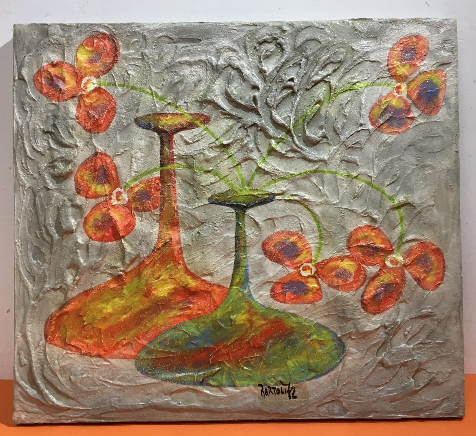 Arte: Piacevole Opera d'Arte, Soggetto Floreale Con Vasi O Bottiglie, Bartoli, 1972