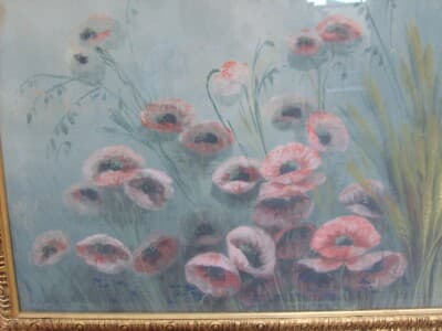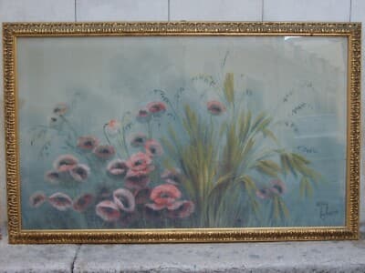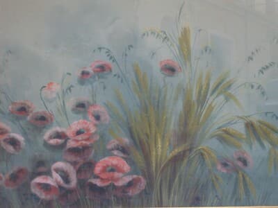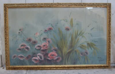 Gaetano Paloscia: Campo Di Grano E Papaveri. Grande Dipinto A Tempera