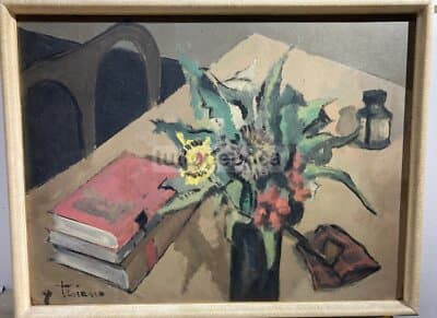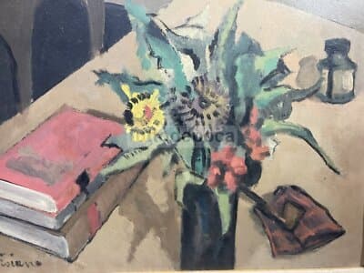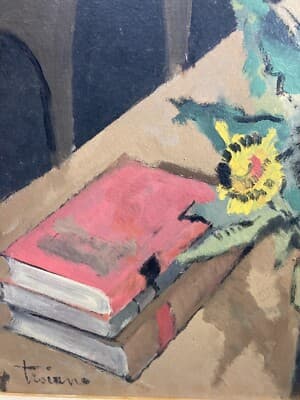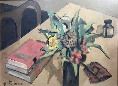Arte Del '900: Natura Morta Con Vaso Di Fiori, Libri E Calamaio, Artista Troiano