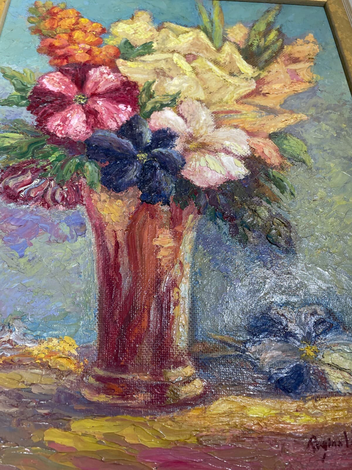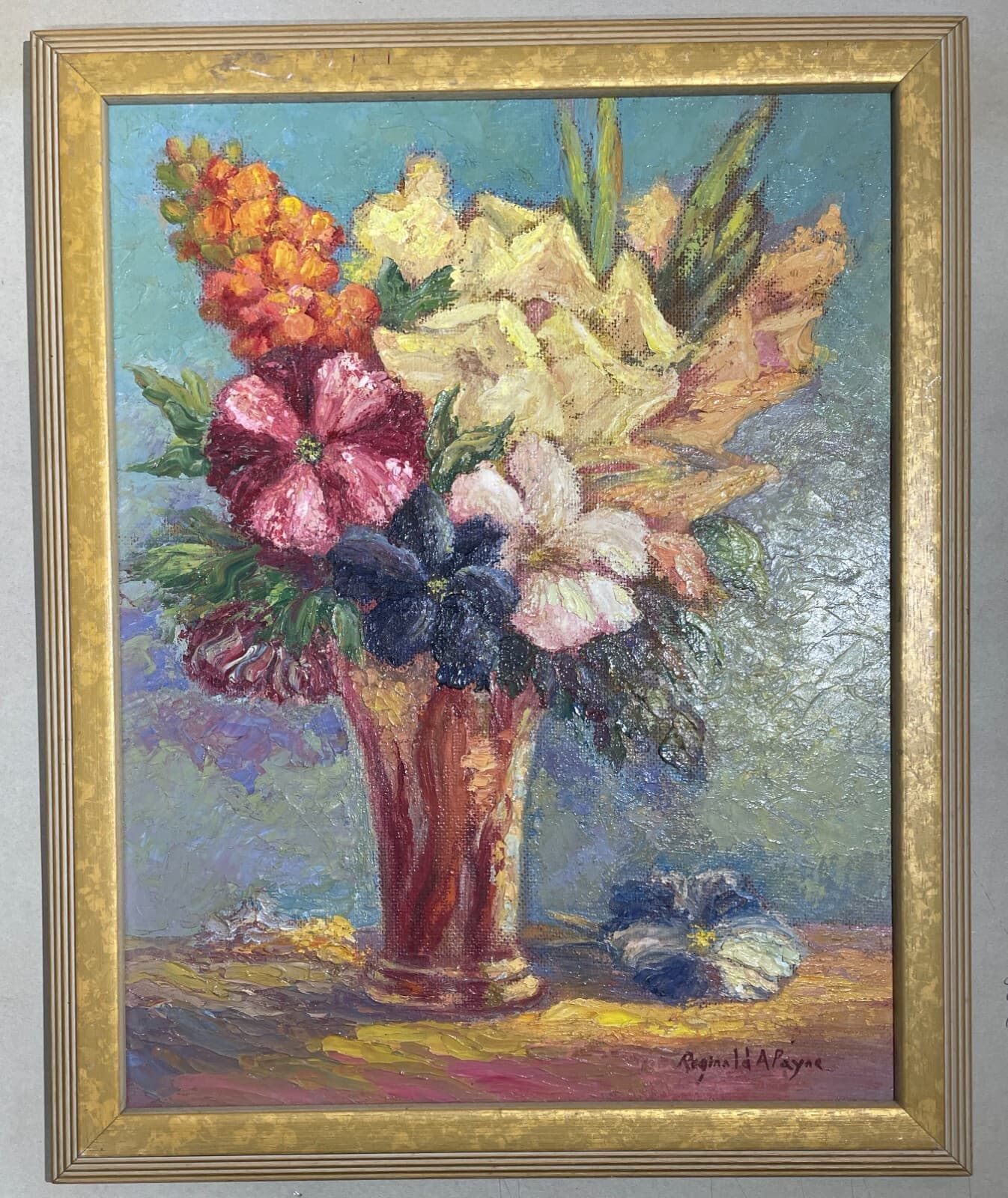 Arte Moderna Artista Reginald Payne Decorativo Dipinto Originale Vaso Con Fiori