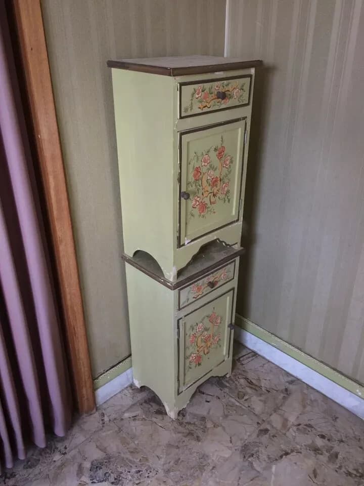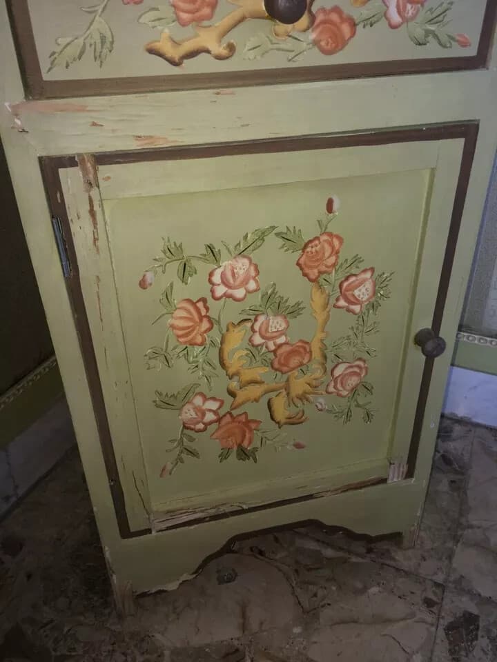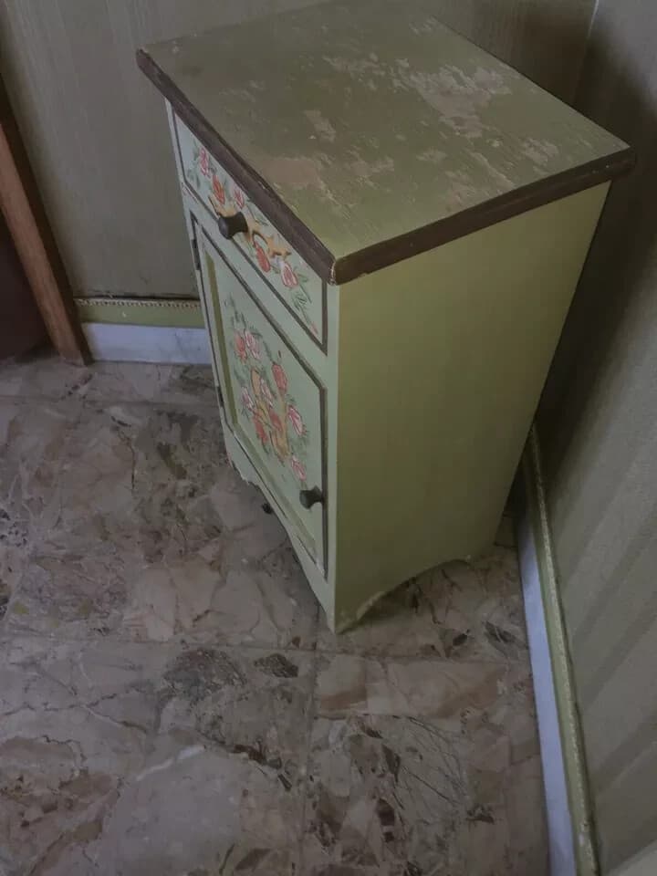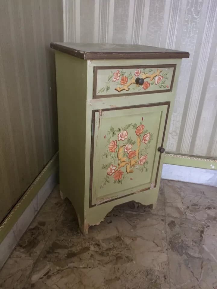 Coppia Di Comodini Con Decori Floreali Dipinti, Da Restaurare