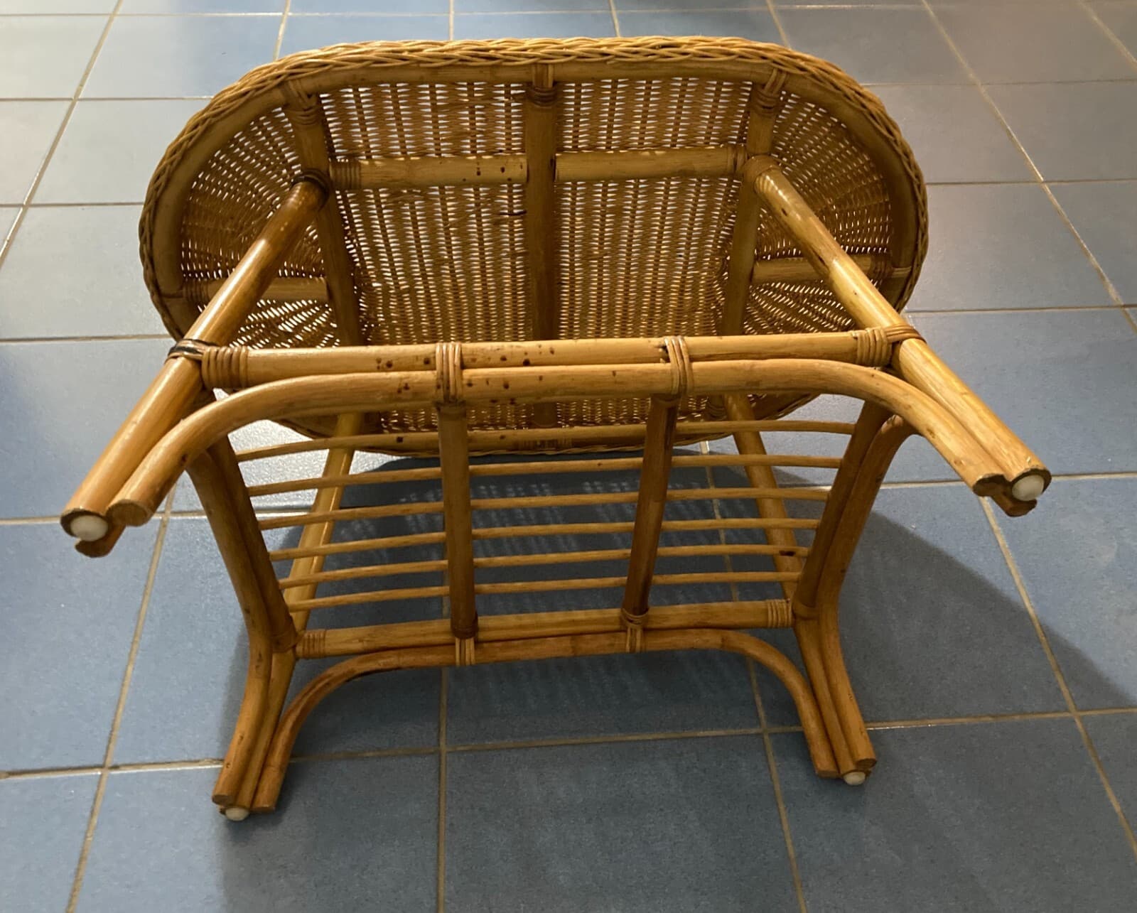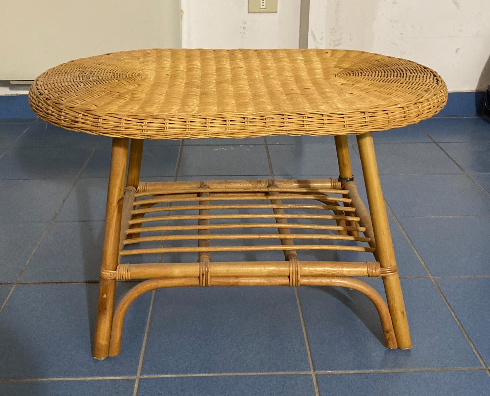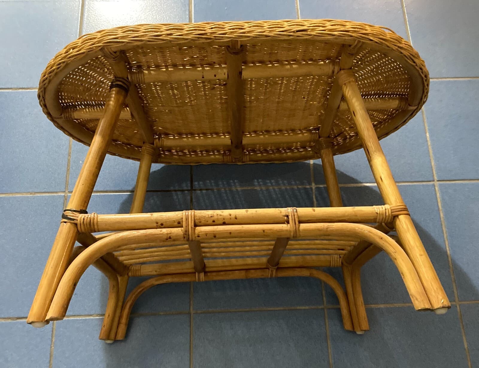 Grazioso Tavolino Ovale In Stile Bambù. Complemento d'Arredo Di Modernariato.
