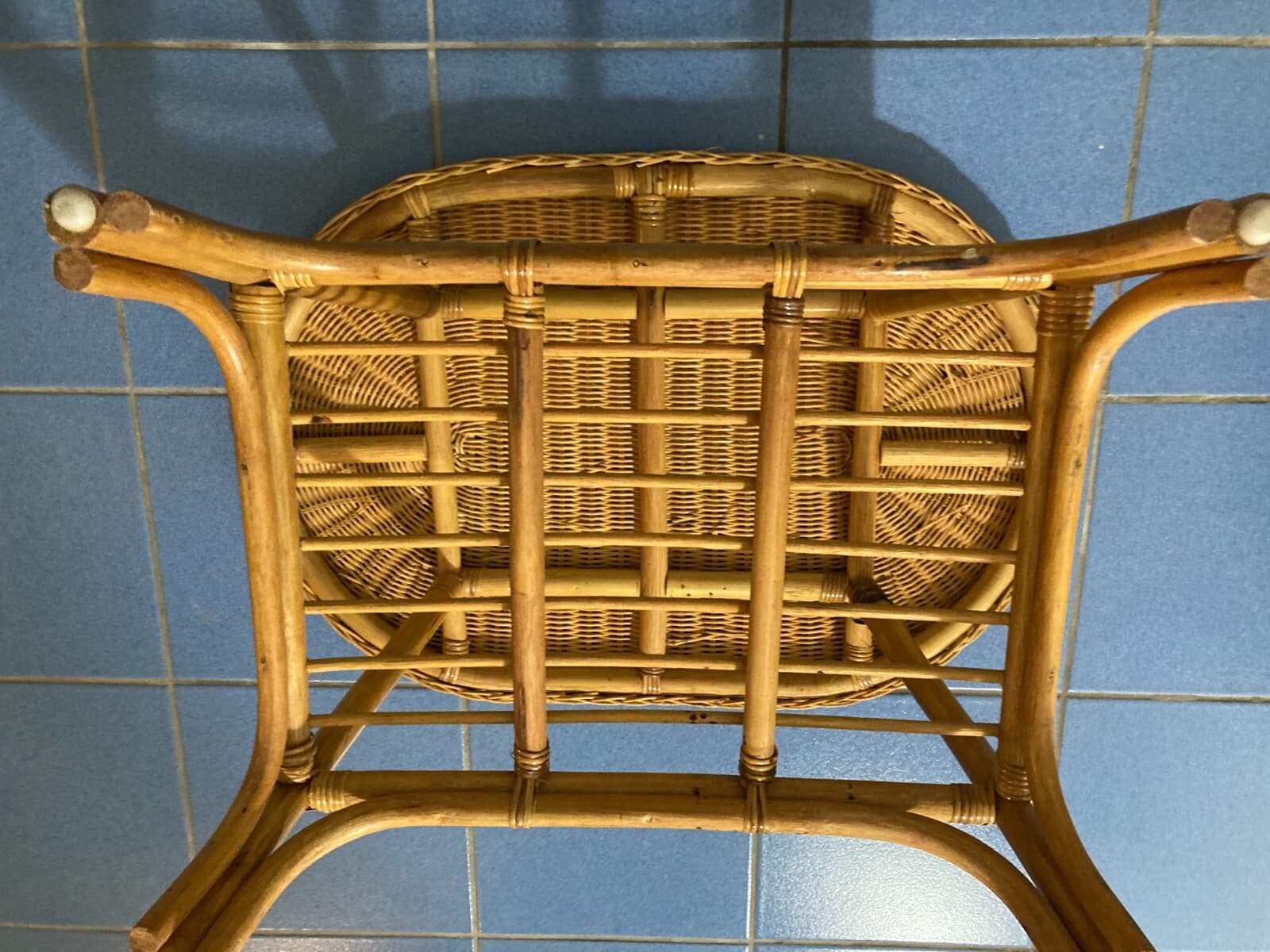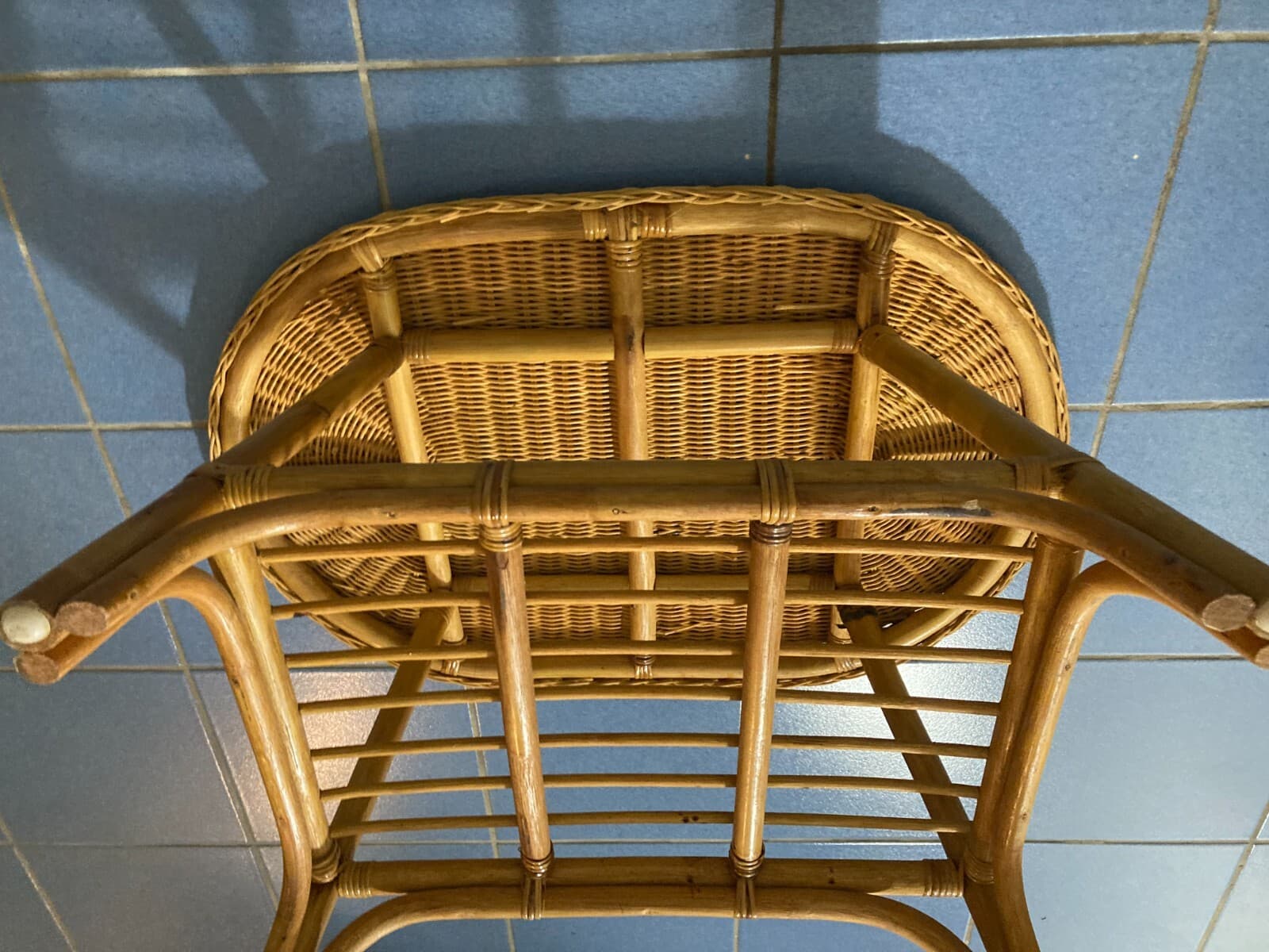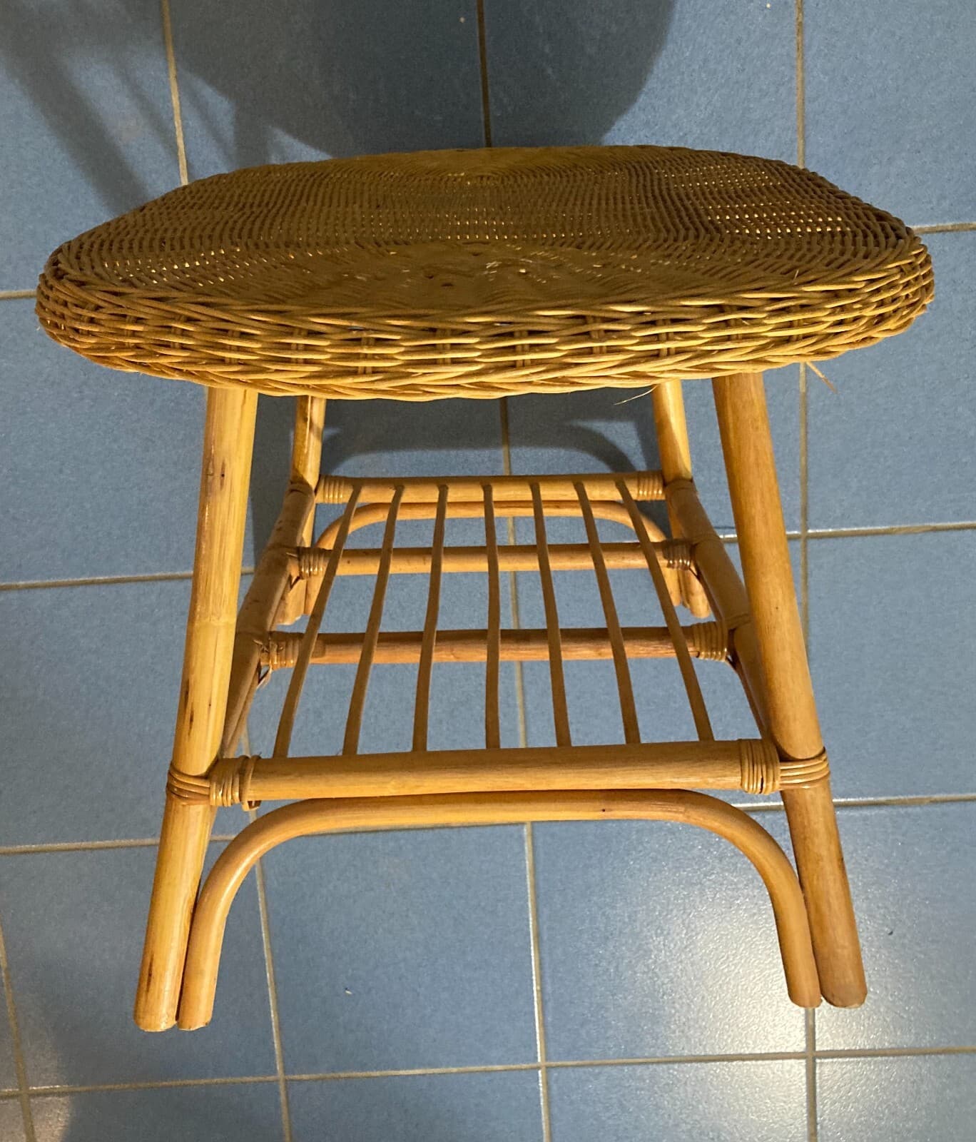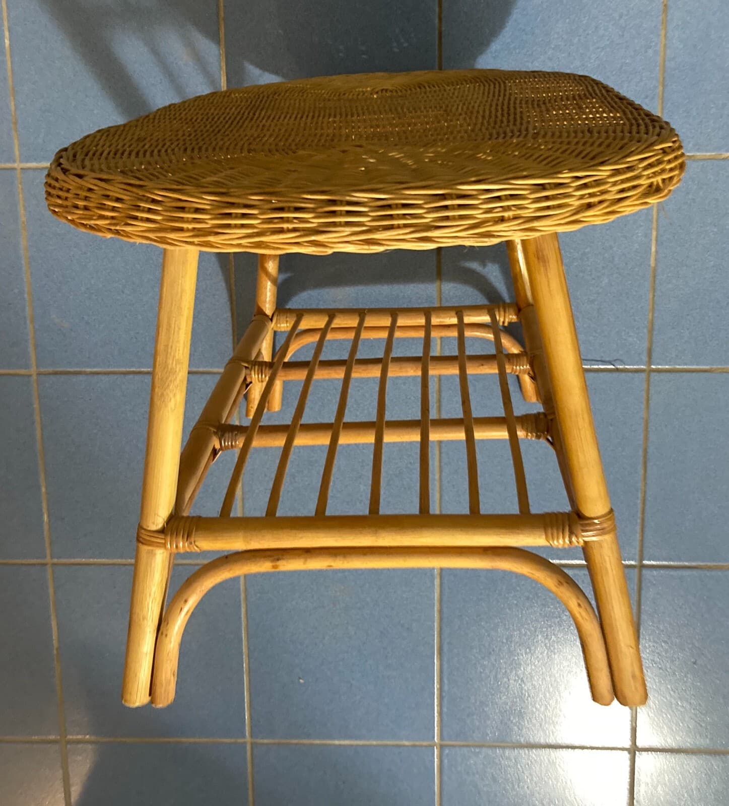 Grazioso Tavolino Ovale In Stile Bambù. Complemento d'Arredo Di Modernariato.