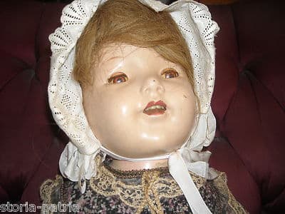Bambola d'Epoca Con Vestito, Cuffia E Scarpe