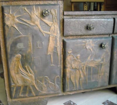 Mobile Credenza Artistica Con Applicazioni In Rame Sbalzato