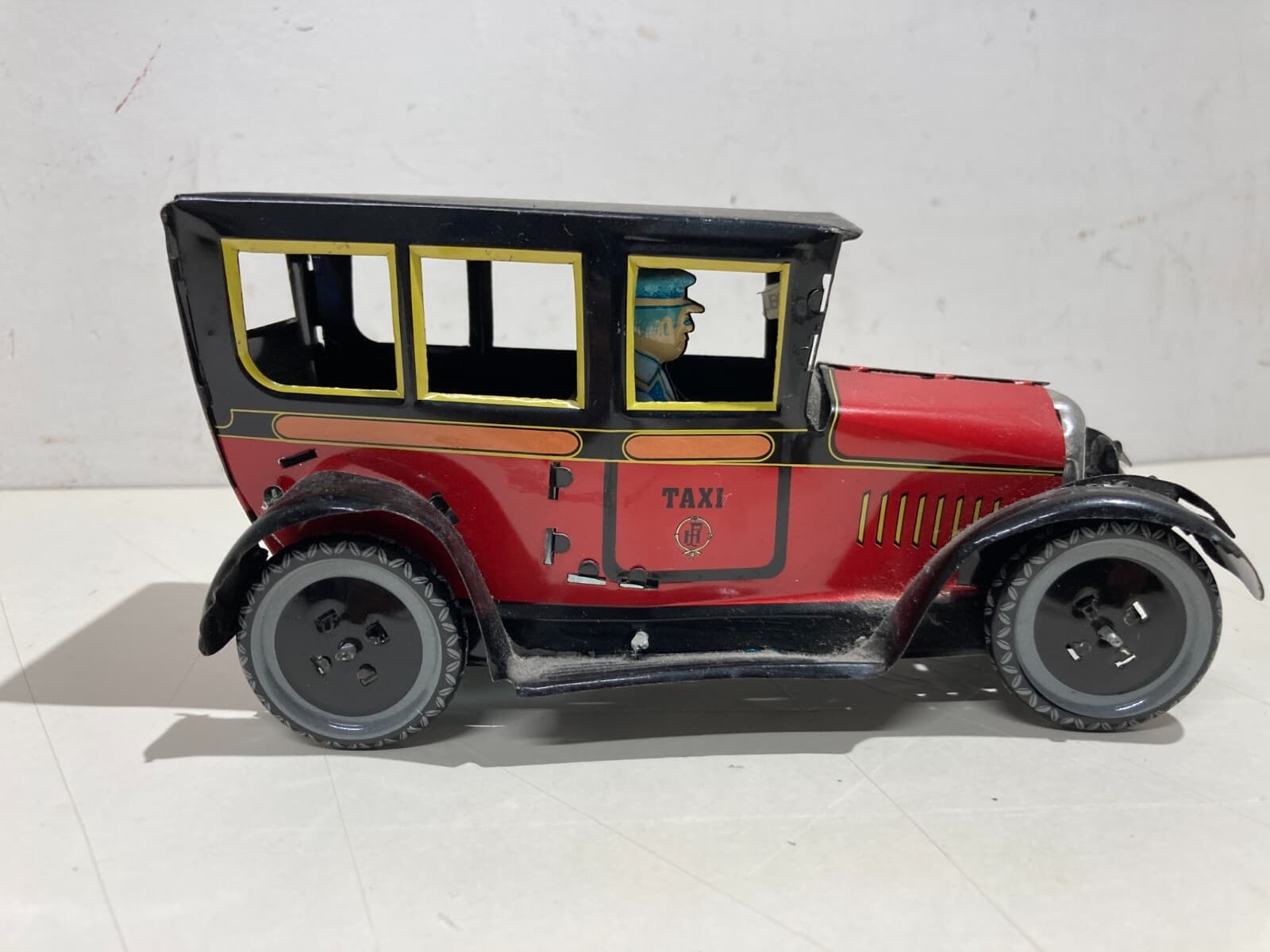 Automobilina Taxi Giocattolo In Latta Con Autista