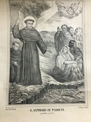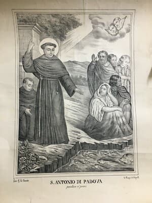 Stampa Popolare Devozionale: S. Antonio Di Padova Predica Ai Pesci, Napoli