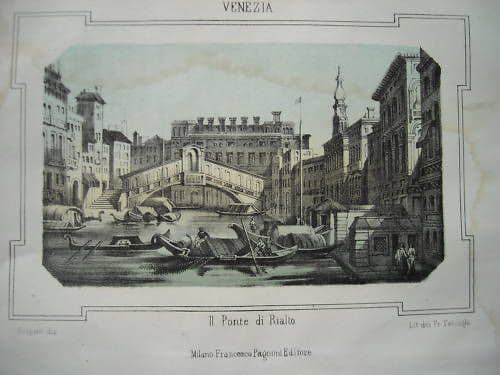 Veduta Del Ponte Di Rialto A Venezia, Litografia Di Barbieri, XIX Secolo