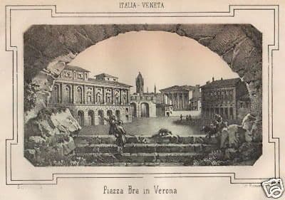 Litografia Antica Piazza Bra, Verona, 1857, Rossetti, Barbieri