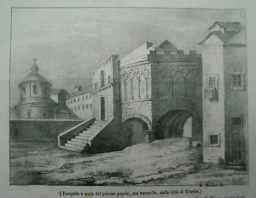 Palazzo Vescovile, Viterbo. Litografia Originale, G. Mariani, Metà XIX Secolo