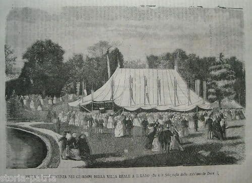 Incisione Villa Reale Milano Fiera Beneficenza 1865 Xilografia