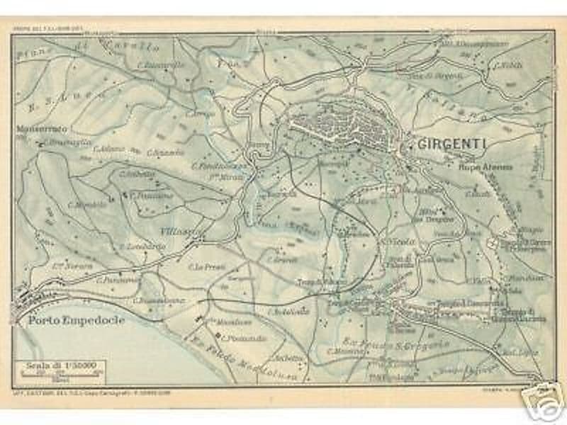 Mappa Topografica Antica Di Girgenti (Agrigento) E Porto Empedocle, Anni '20