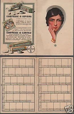 Calendarietto Pubblicitario Bayer Aspirina Elmintolo 1929