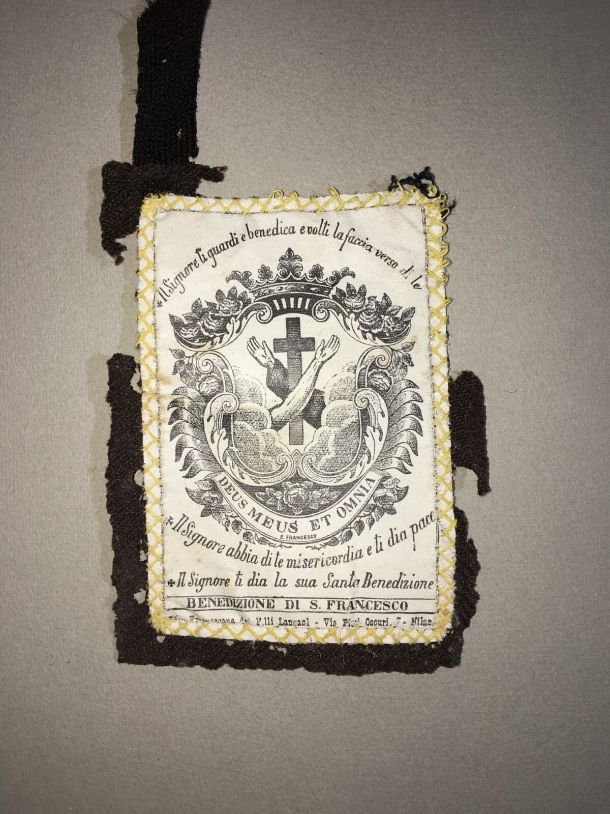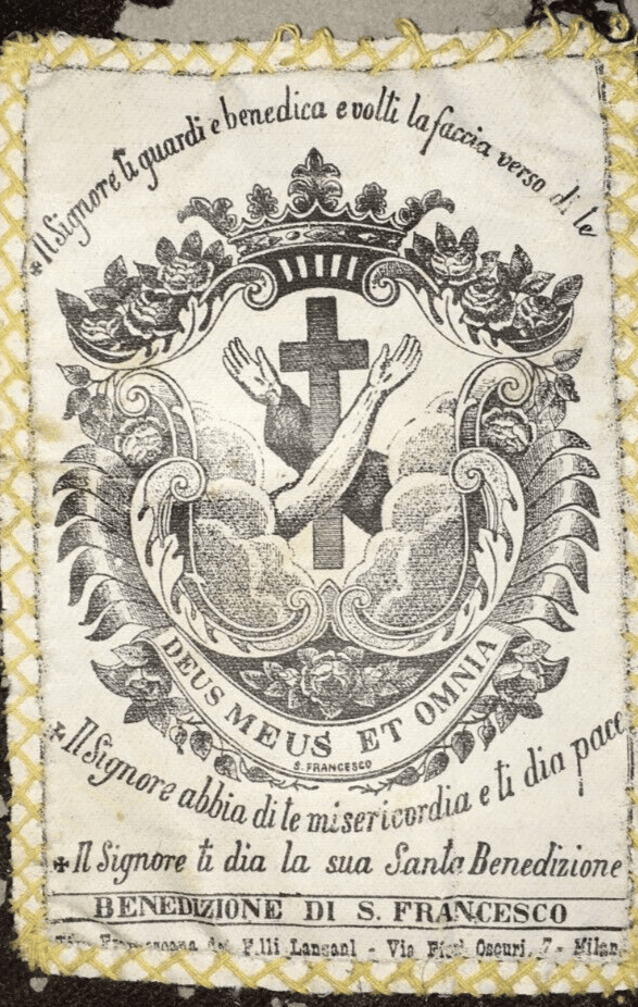 Stampa Antica Popolare Devozionale: Benedizione Di San Francesco Su Tessuto
