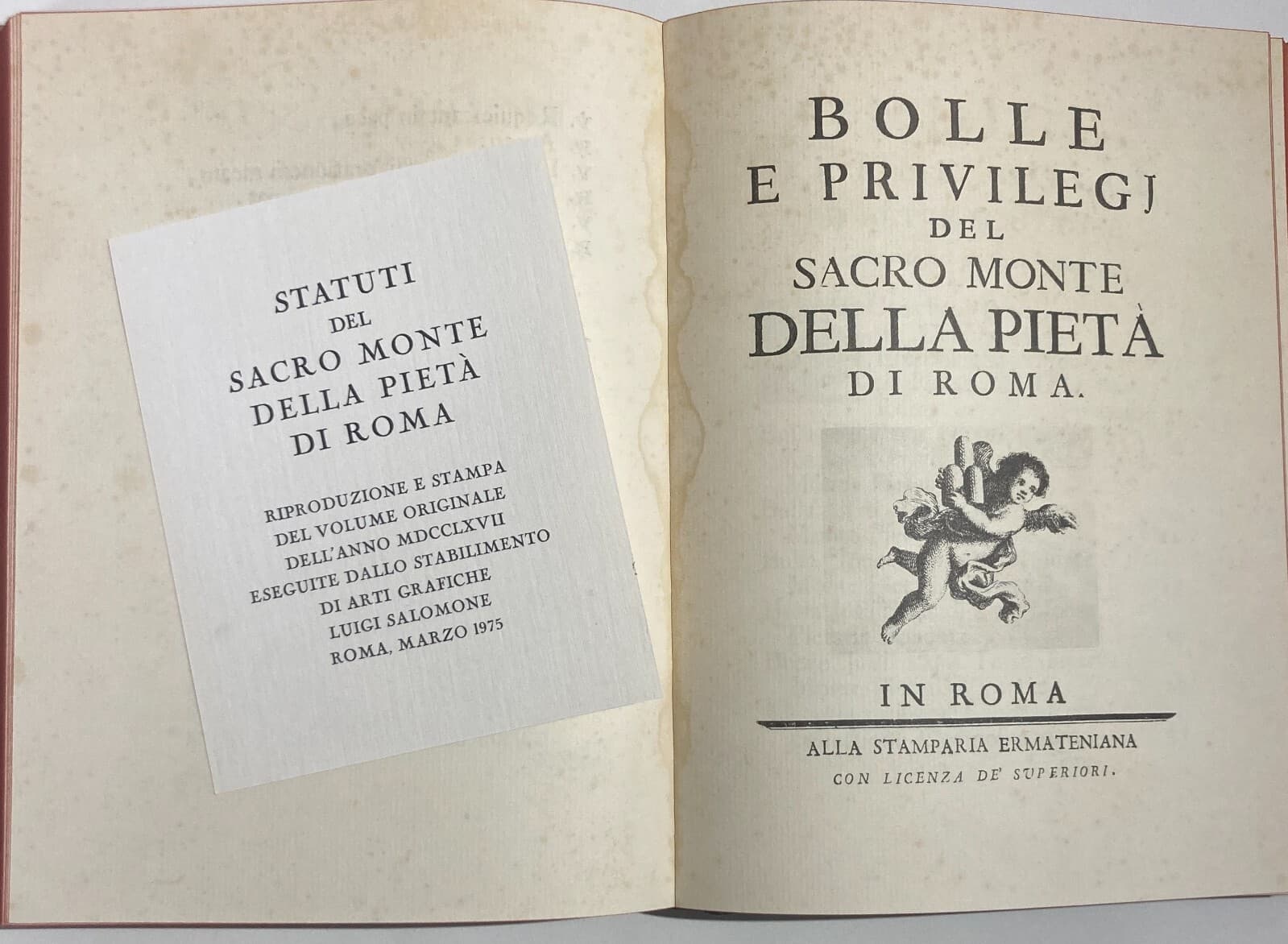 Statuti Del Sacro Monte Della Pietà Di Roma Ristampa Anastatica (1975)