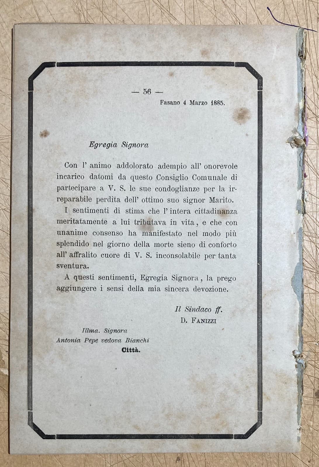 Puglia: Antico Necrologio Luigi E Damaso Bianchi Fasano Trisciuzzi Brandi 1885