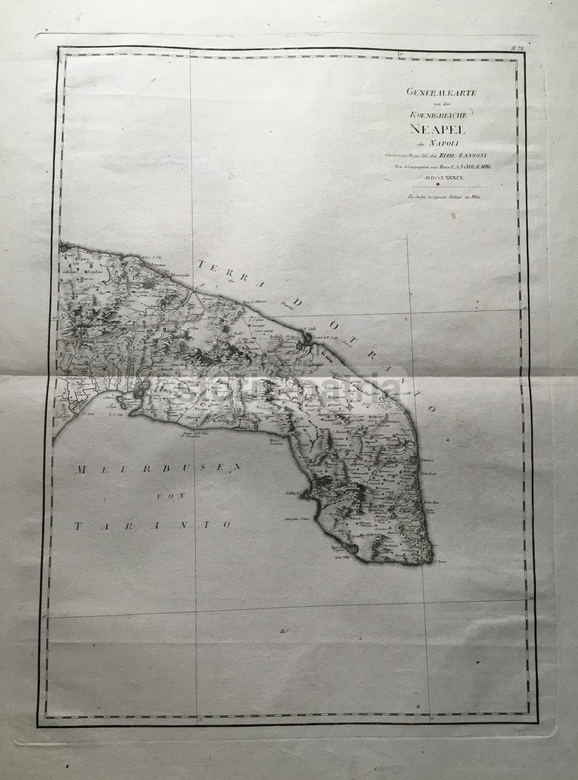 Puglia, Salento E Terra d'Otranto Mappa Di Rizzi Zannoni