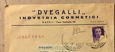 Busta Pubblicitaria d'Epoca Due Galli Industria Cosmetici, Napoli