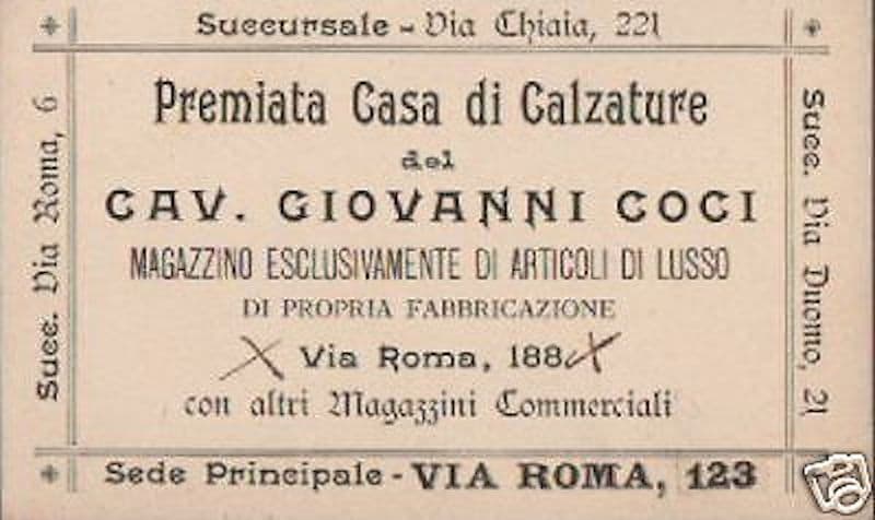 Napoli Calzoleria Scarpe Coci: Antico Biglietto Da Visita Pubblicitario d'Epoca