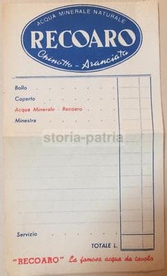 Recoaro: Acqua Minerale, Chinotto, Aranciata. Foglietto Pubblicitario d'Epoca.