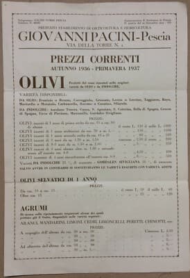 Agraria, Botanica, Ortaggi, Piante, Fiori, Pescia, Pacini: Pieghevole Pubblicitario