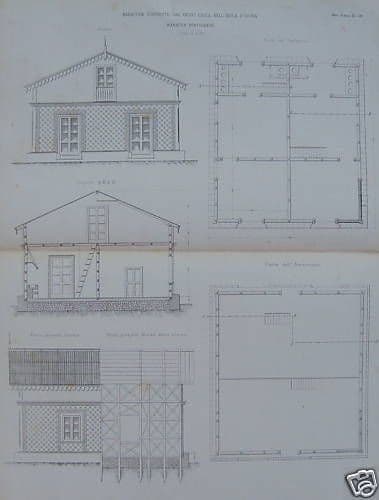Baracca Portoghese Ischia Genio Civile Litografia Originale '800