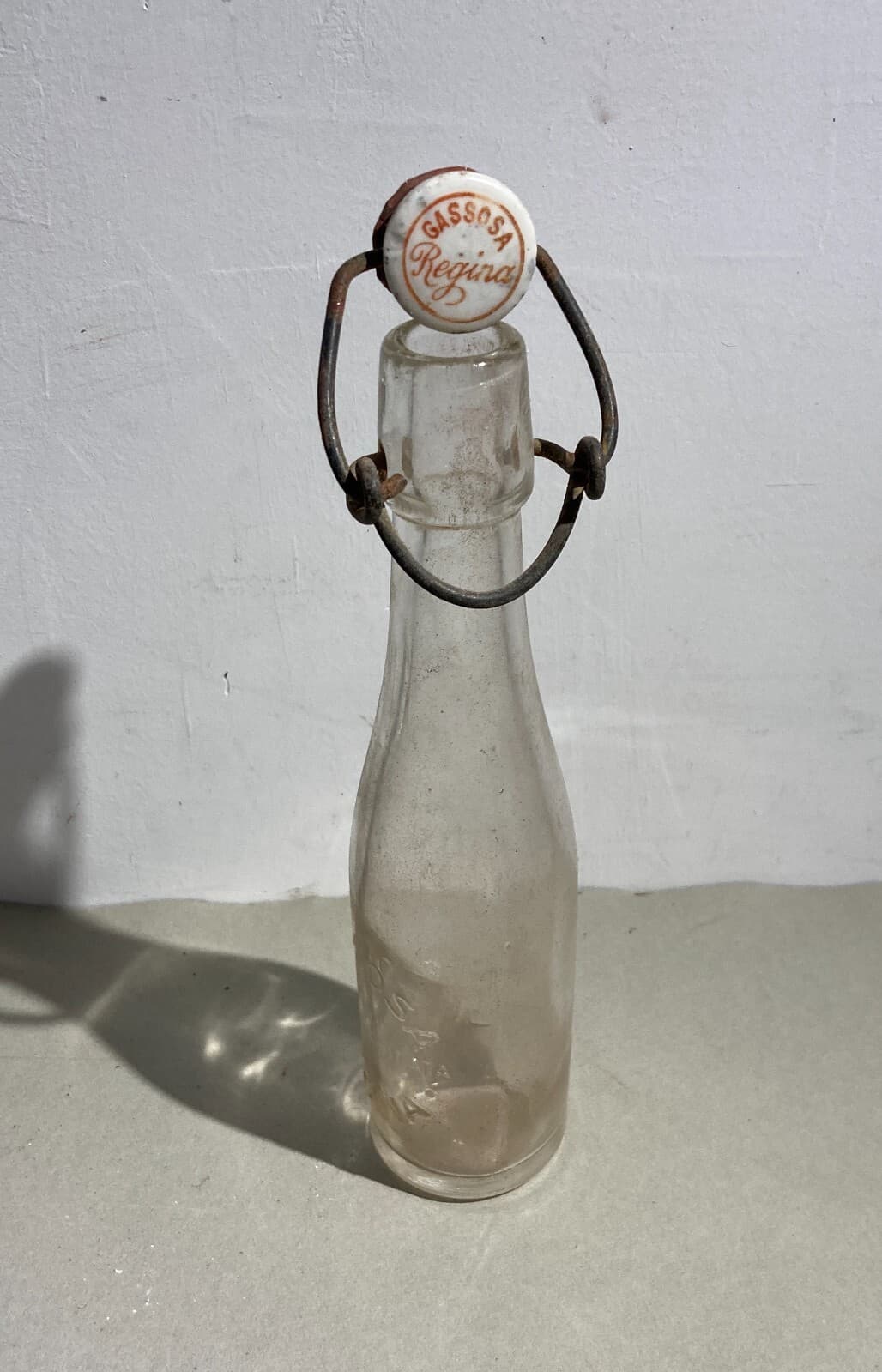Bottiglia Da Collezione In Vetro Chiaro, Gassosa Regina, Pubblicitaria d'Epoca
