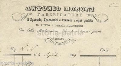 Milano, Moroni: Spazzole E Pennelli. Antica Carta Intestata Pubblicitaria, 1869