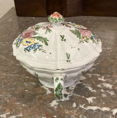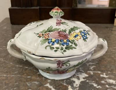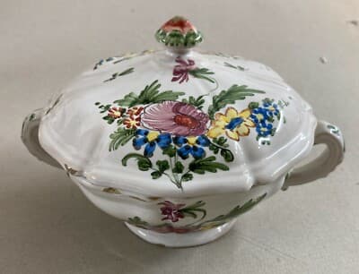 Decorativo Soprammobile: Piccola Zuppiera Con Coperchio E Decoro Floreale