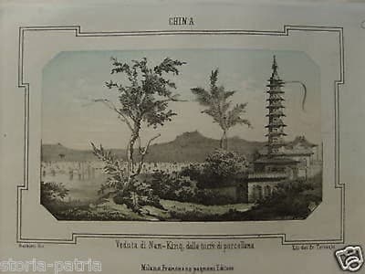 Cina, Nanchino, Torre Di Porcellana, Litografia Originale, XIX Secolo