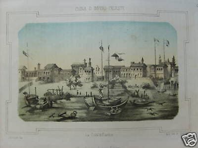Cina, Kanton: Veduta Animata Con Barche, Litografia Originale