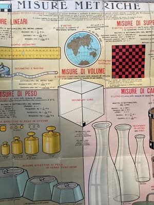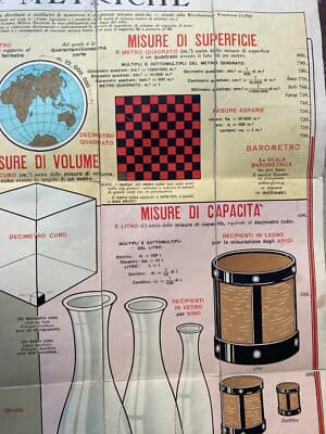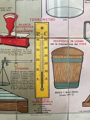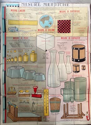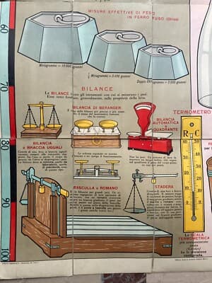 Scienze Metriche: Misure, Termometro, Bilance, Pesi, Capacità. Grande Stampa Antica