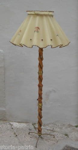 Lampada Piantana Vintage In Legno A Spirale E Ottone, Anni '50