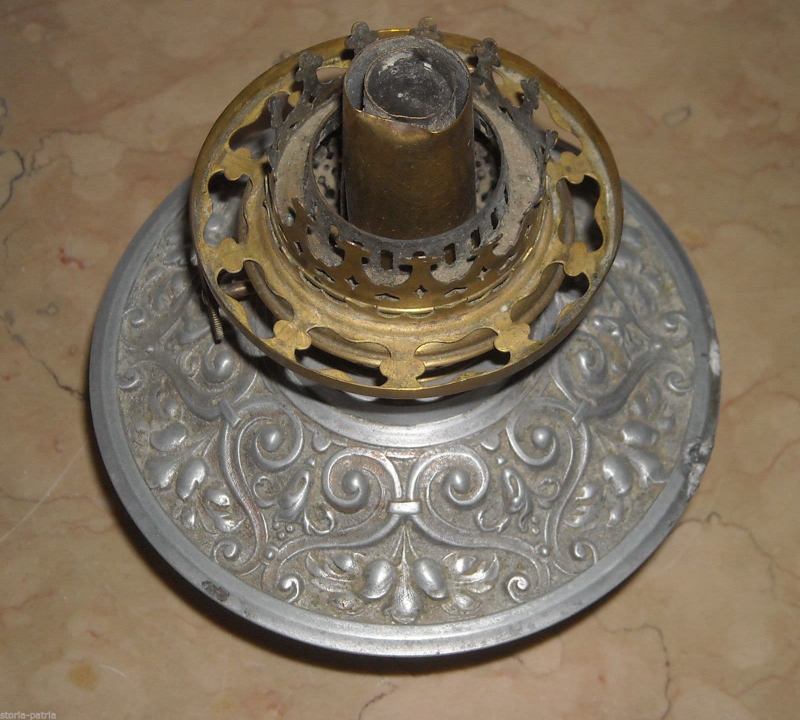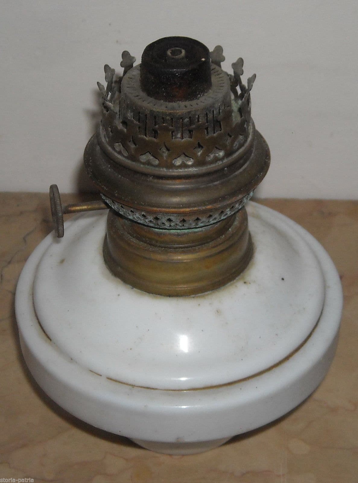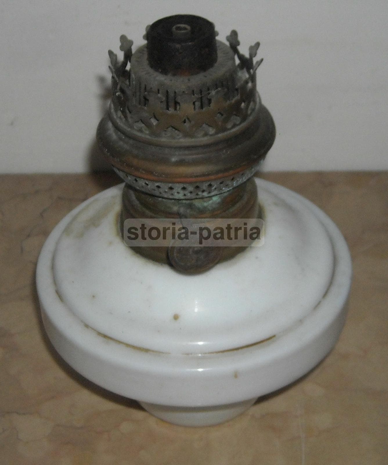 Lampada Antica A Petrolio In Vetro Opaline Bianco Kosmos Vulkan, Epoca Liberty