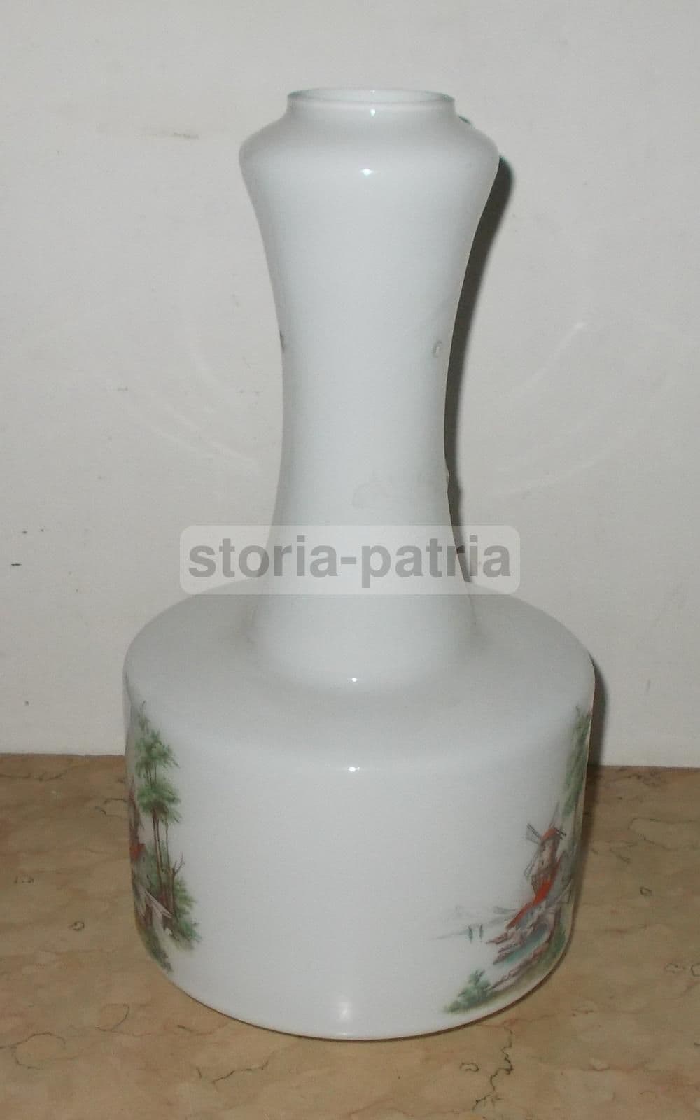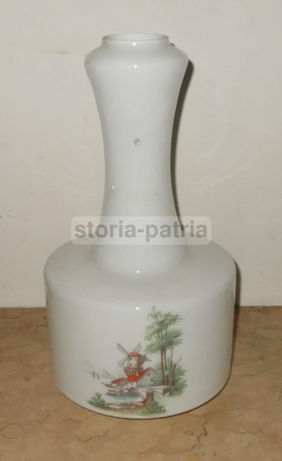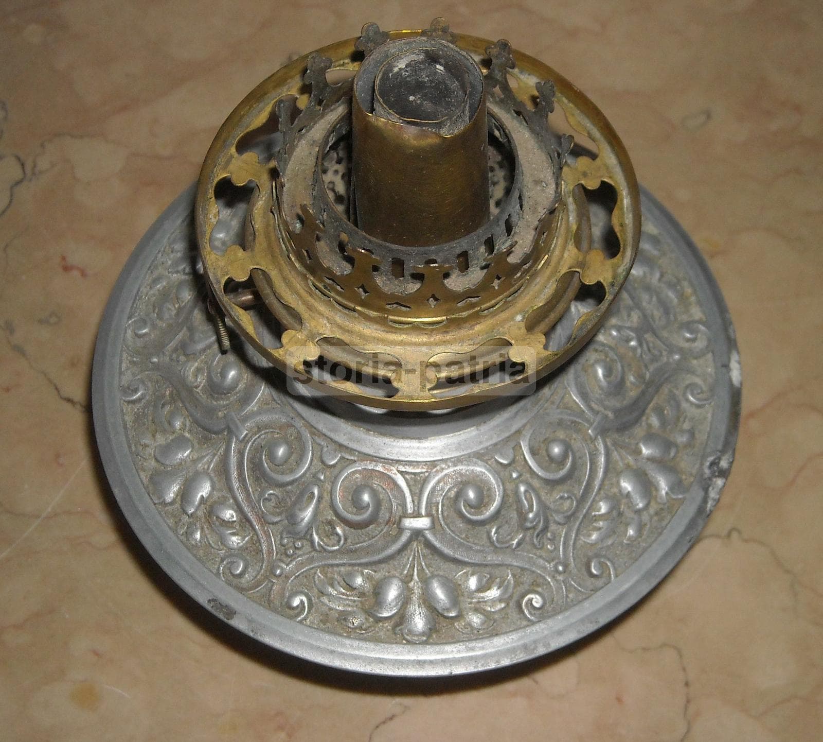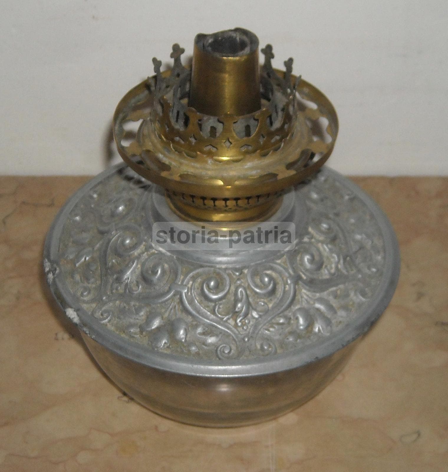 Lampada Antica A Petrolio In Vetro Opaline Bianco Kosmos Vulkan, Epoca Liberty
